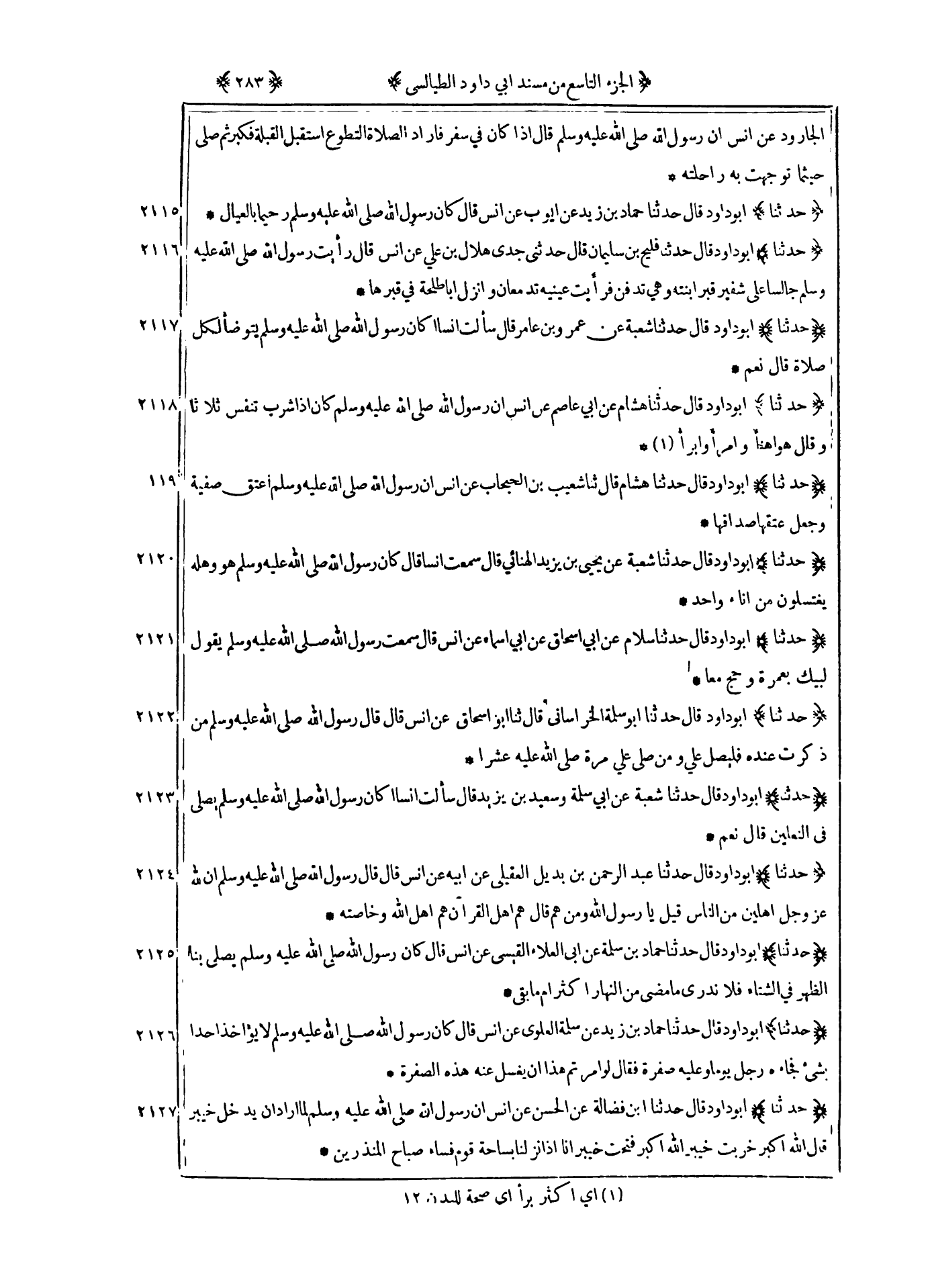 2122 - حدثنا أبو داود قال حدثنا أبو سلمة الخراساني قال ثنا أبو إسحاق عن أنس قال قال رسول الله صلى الله عليه و سلم : من ذكرت عنده فليصل علي ومن صلى علي مرة صلى الله عليه و سلم عشرا