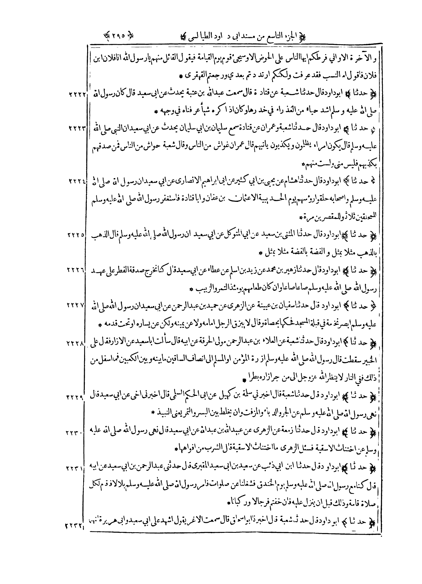 2225 - حدثنا أبو داود قال حدثنا المثنى بن سعيد عن أبي المتوكل عن أبي سعيد ان رسول الله صلى الله عليه و سلم قال : الذهب بالذهب مثلا بمثل والفضة بالفضة مثلا بمثل