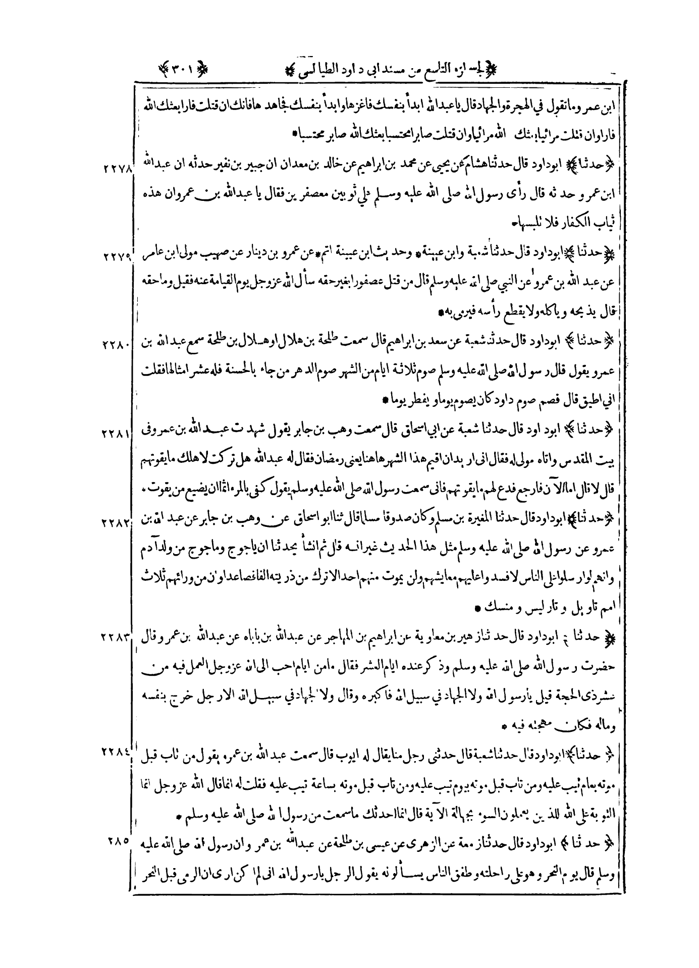 2283 - حدثنا أبو داود قال حدثنا زهير بن معاوية عن إبراهيم بن المهاجر عن عبد الله بن باباه عن عبد الله بن عمرو قال حضرت رسول الله صلى الله عليه و سلم وذكر عنده أيام العشر فقال : ما من أيام أحب الى الله عز و جل العمل فيه من عشر ذي الحجة قيل يا رسول الله ولا الجهاد في سبيل الله فأكبره وقال ولا الجهاد في سبيل الله الا رجل خرج بنفسه وماله فكان مهجته فيه