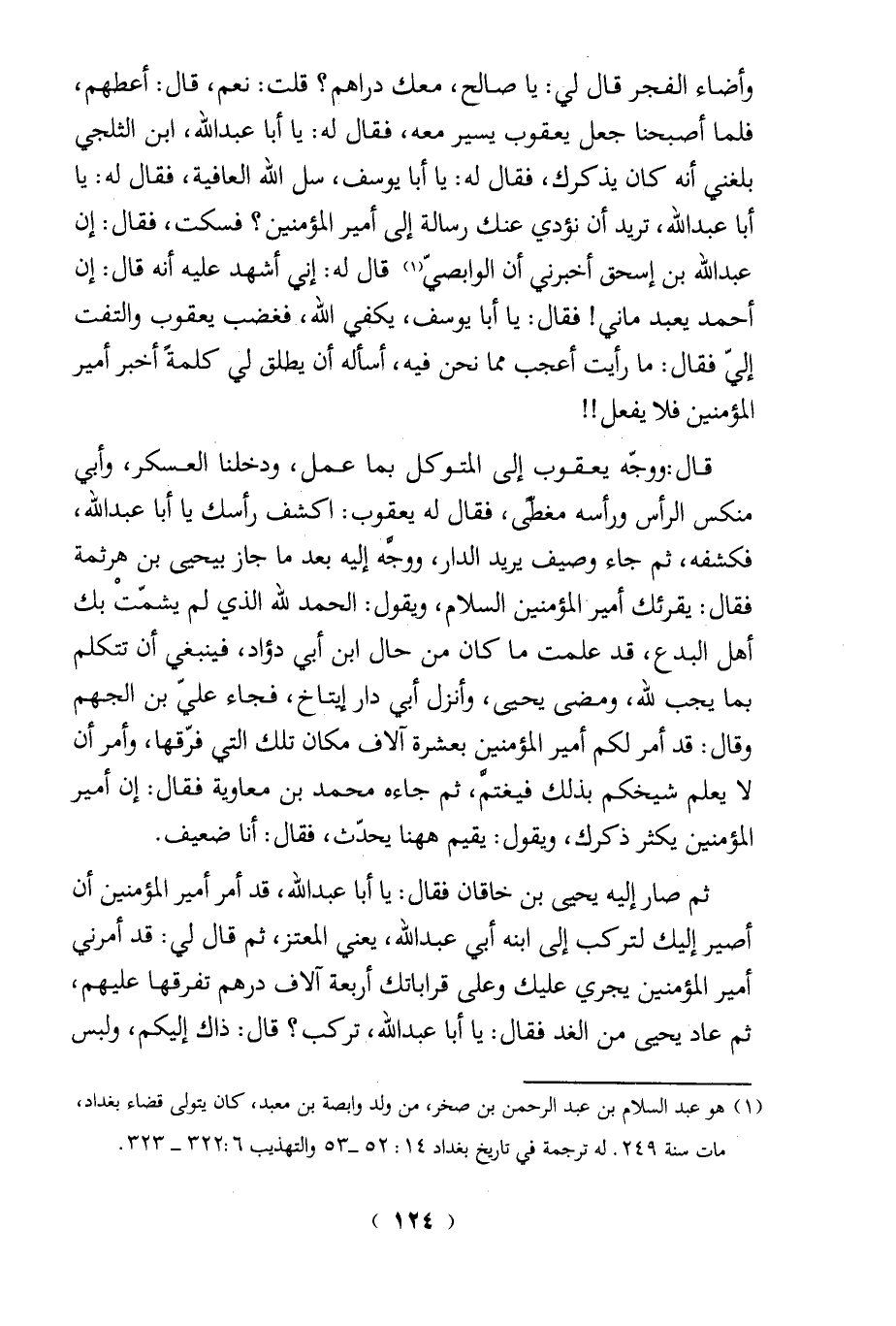 (¬1) هو عبد السلام بن عبد الرحمن بن صخر، من ولد وابصة بن معبد، كان يتولى قضاء بغداد، مات سنة 249. له ترجمة في تاريخ بغداد 14: 52 - 53 والتهذيب 6:322 - 323.