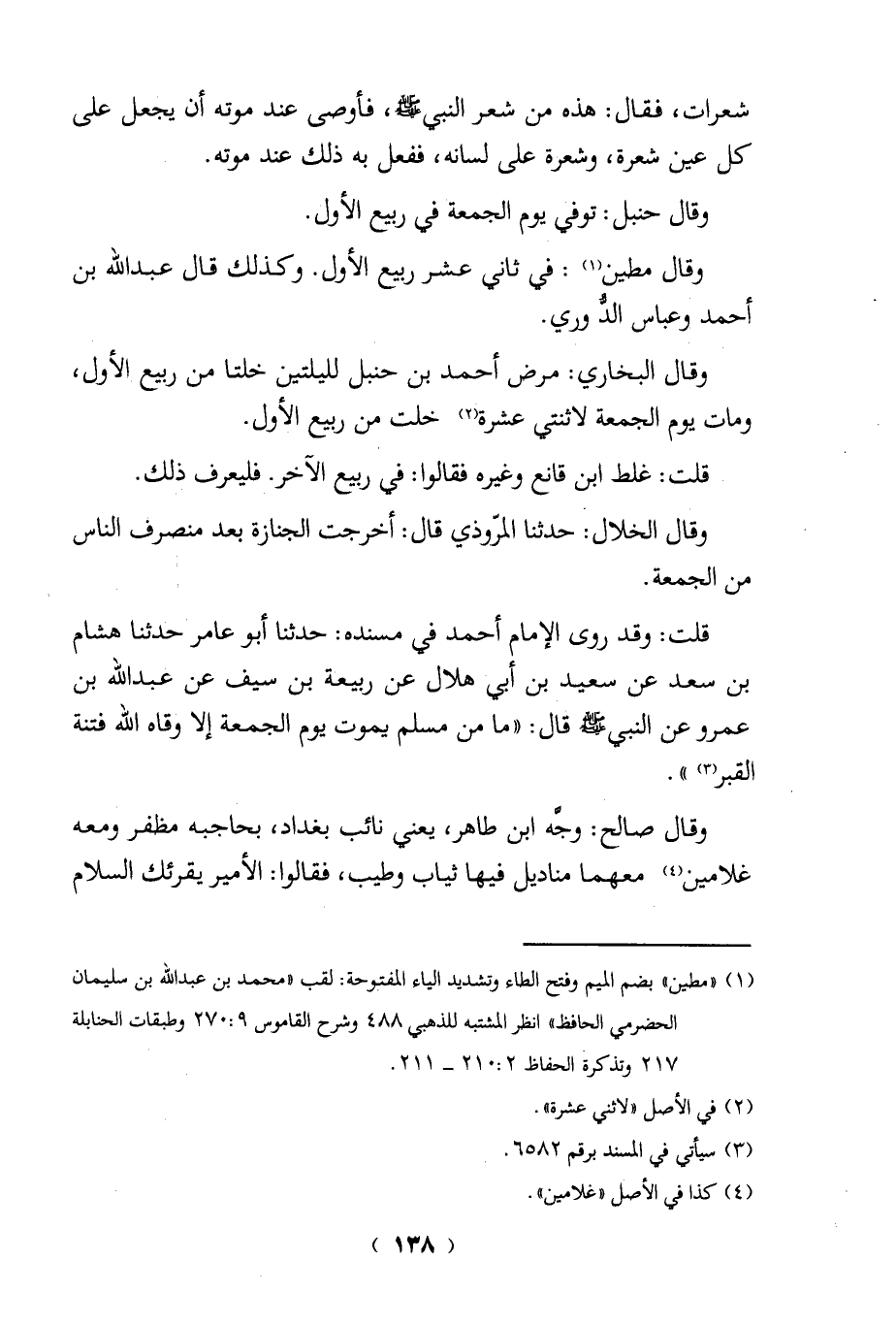 (¬1) "مطين" بضم الميم وفتح الطاء وتشديد الياء المفتوحة: لقب "محمد بن عبد الله بن سليمان الحضرمي الحافظ" انظر المشتبه للذهبي 488 وشرح القاموس 9: 270 وطبقات الحنابلة 217 وتذكرة الحفاظ 2: 210 - 211.