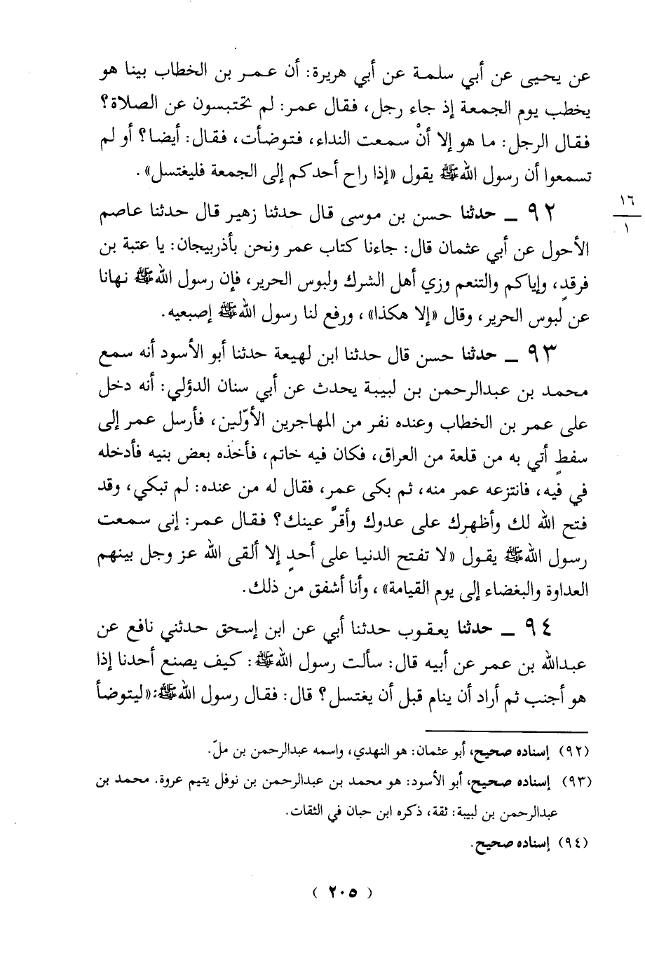 (92) إسناده صحيح، أبو عثمان: هو النهدي، واسمه عبد الرحمن بن مل.