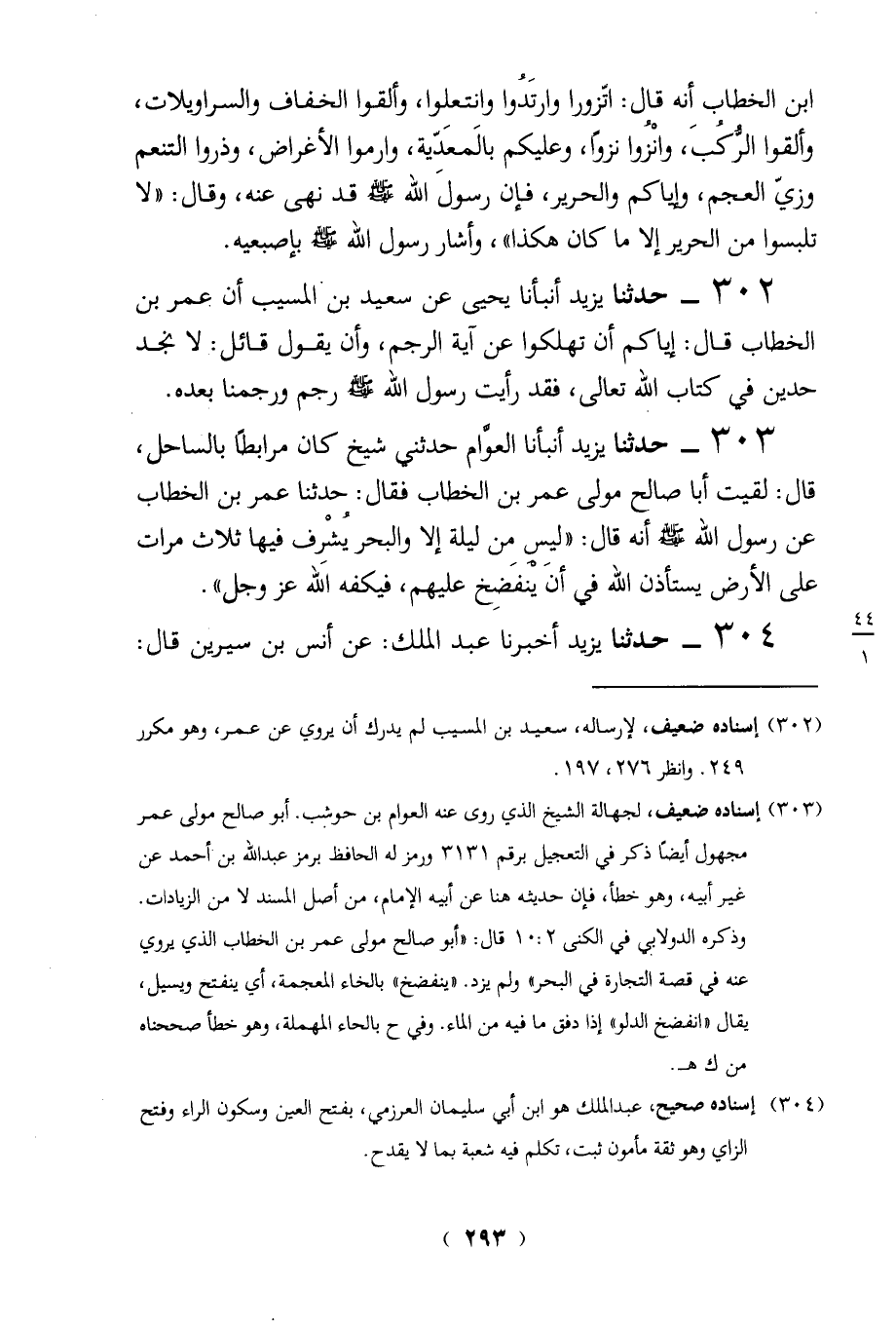 (302) إسناده ضعيف، لإرساله، سعيد بن المسيب لم يدرك أن يروي عن عمر، وهو مكرر 249. وانظر 276، 197.
