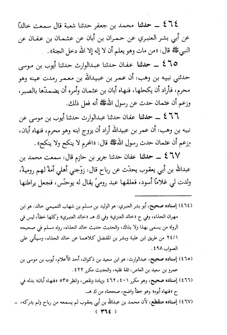 (466) إسناده صحيح، وهو مكرر 401، 462 بزيادة: ونقص، وانظر 535 "فنهاه أبان، بدله في