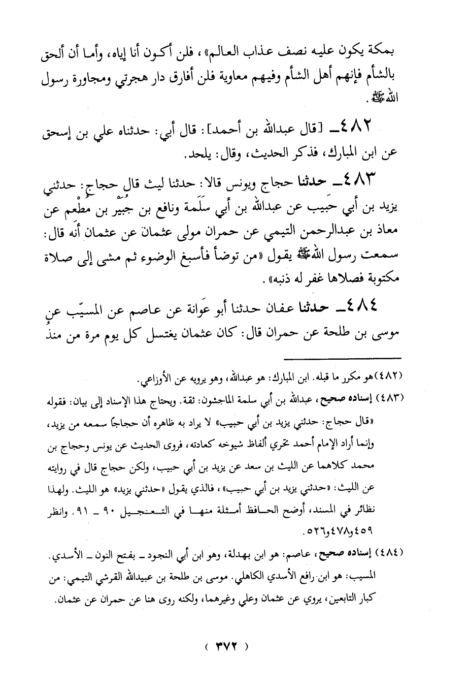 (482) هو مكرر ما قبله. ابن المبارك: هو عبد الله، وهو يرويه عن الأوزاعي.