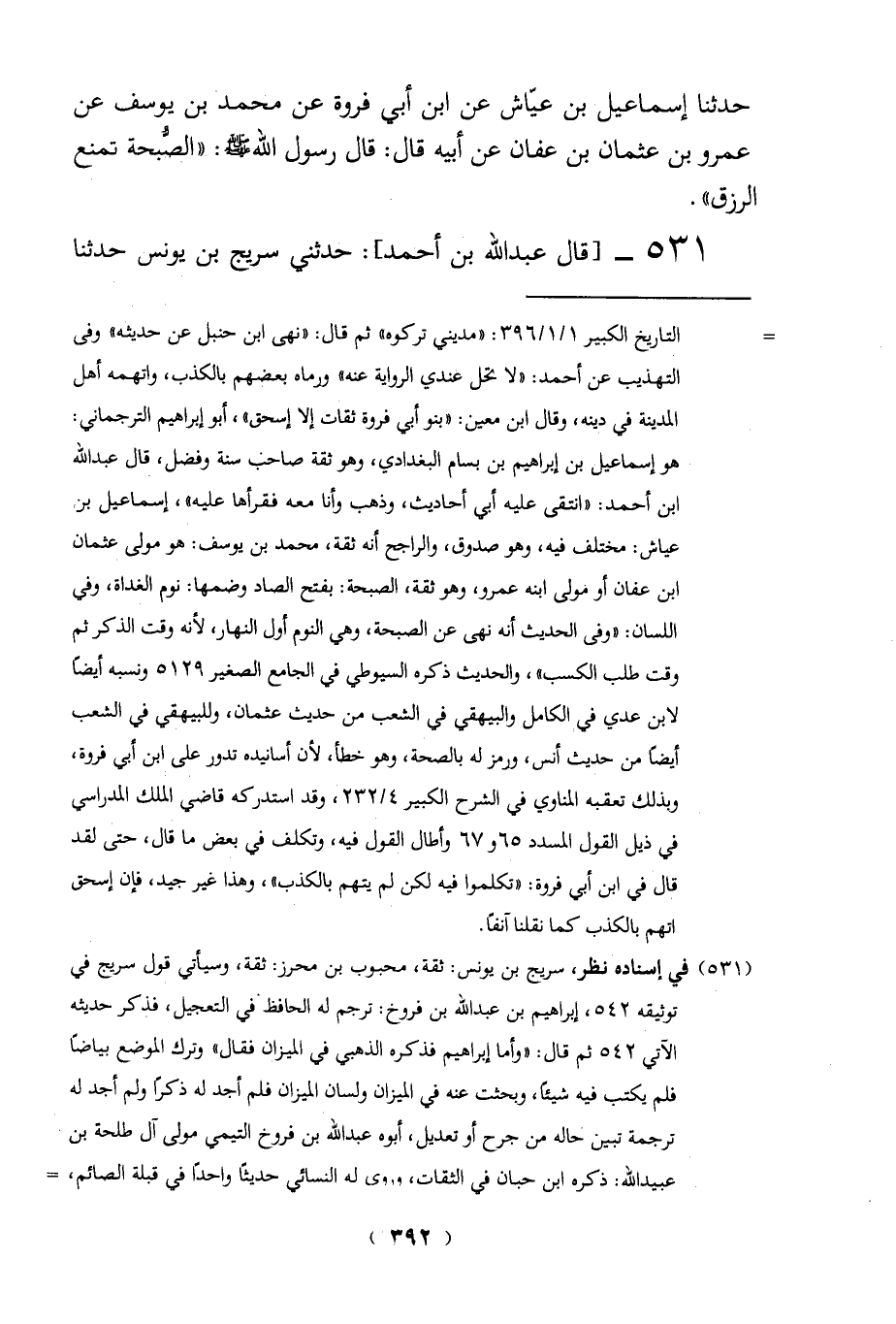 531 - [قال عبد الله بن أحمد]: حدثنى سريج بن يونس حدثنا