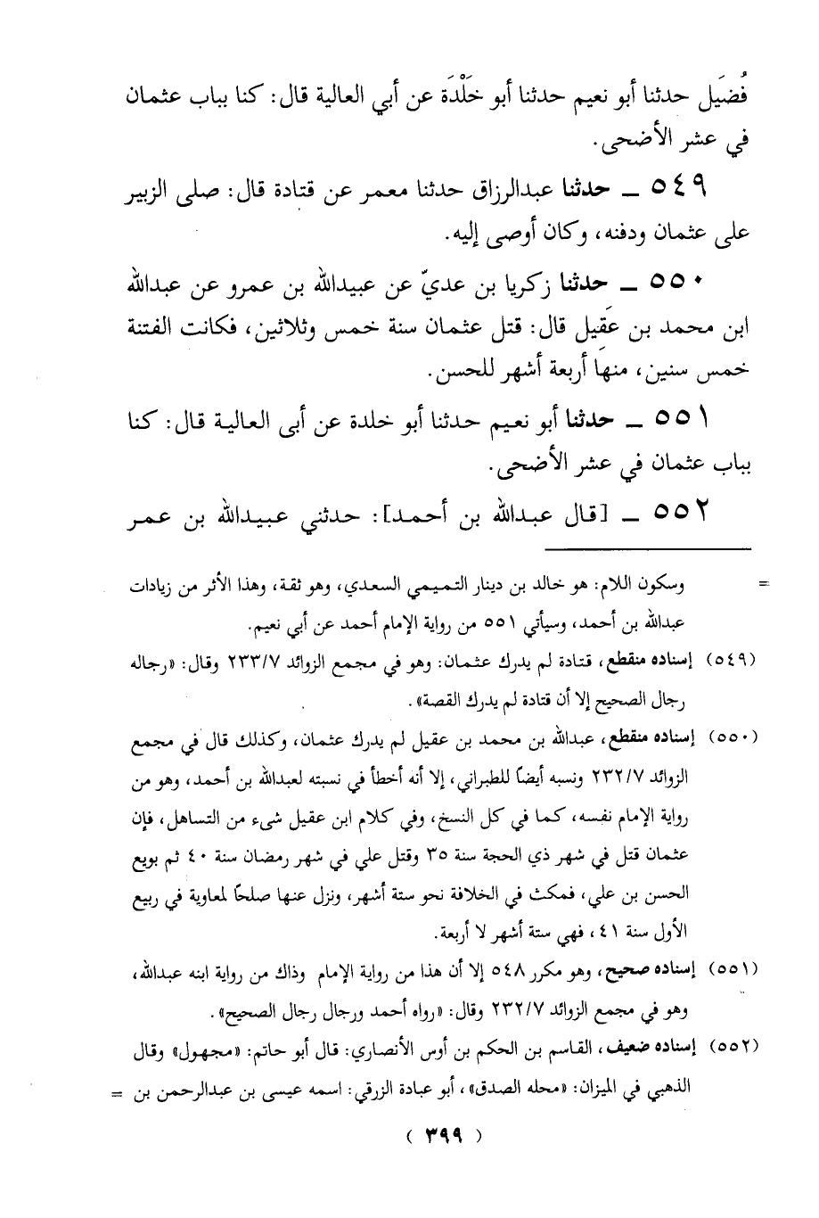 (549) إسناده منقطع، قتادة لم يدرك عثمان: وهو في مجمع الزوائد 7/ 233 وقال: "رجاله رجال الصحيح إلا أن قتادة لم يدرك القصة".