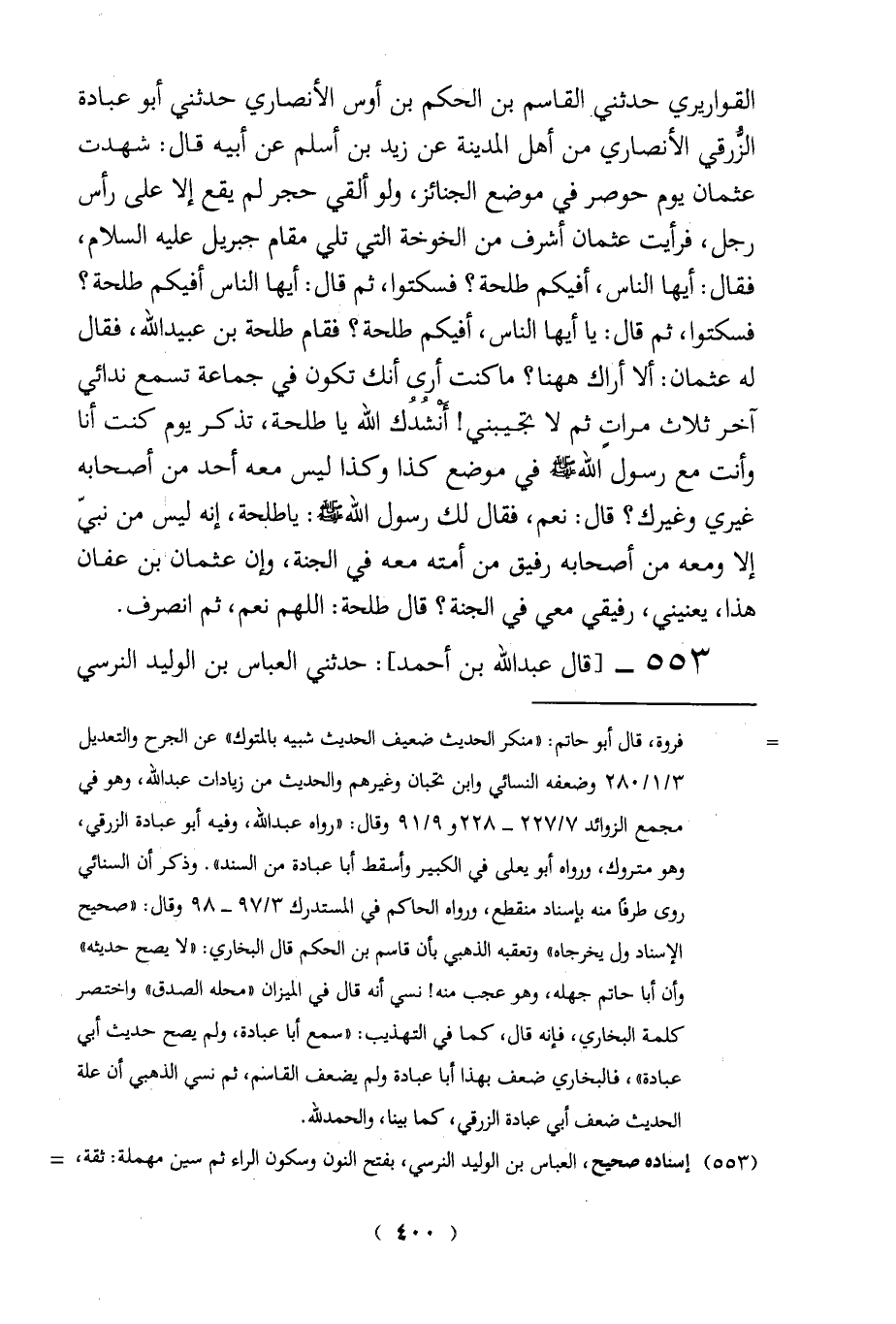 553 - [قال عبد الله بن أحمد]: حدثني العباس بن الوليد النرسي