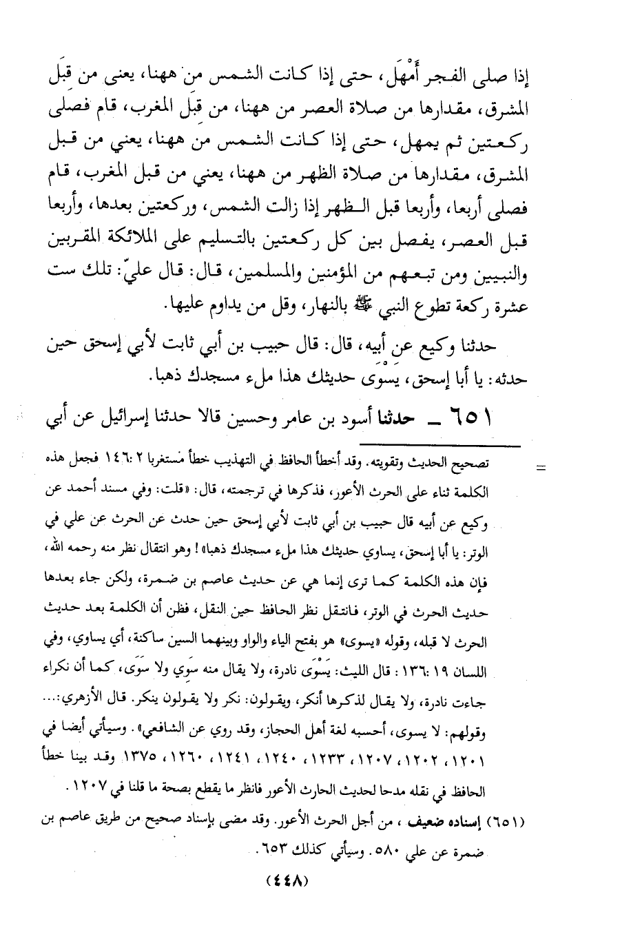 (651) إسناده ضعيف، من أجل الحرث الأعور. وقد مضى بإسناد صحيح من طريق عاصم بن ضمرة عن علي 580. وسيأتي كذلك 653.