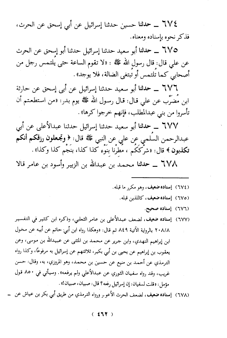 674 - حدثنا حسين حدثنا إسرائيل عن أبي إسحق عن الحرث، فذكر نحوه بإسناده ومعناه.