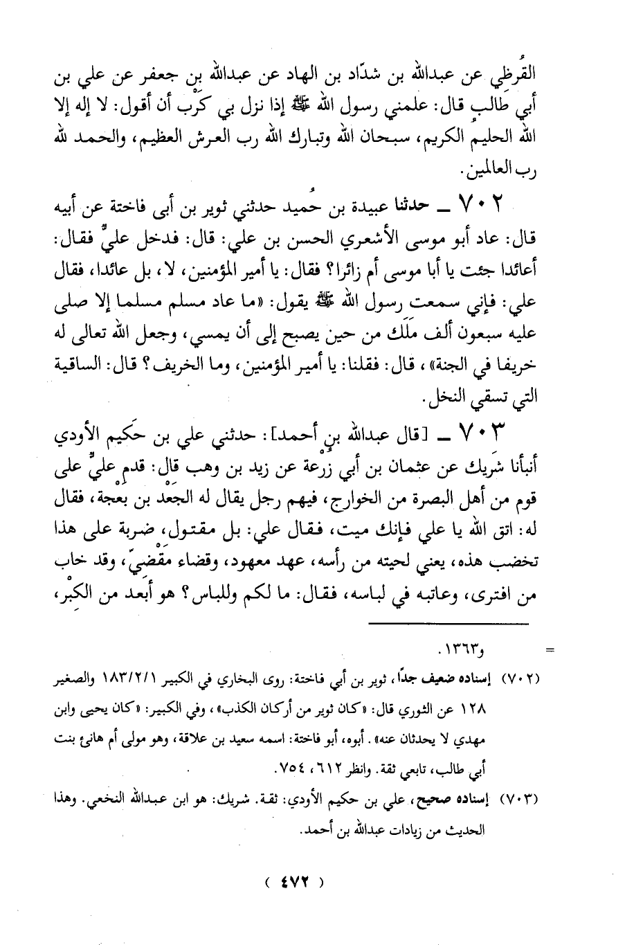(703) إسناده صحيح، على بن حكيم الأودي: ثقة. شريك: هو ابن عبد الله النخعي. وهذا الحديث من زيادات عبد الله بن أحمد.
