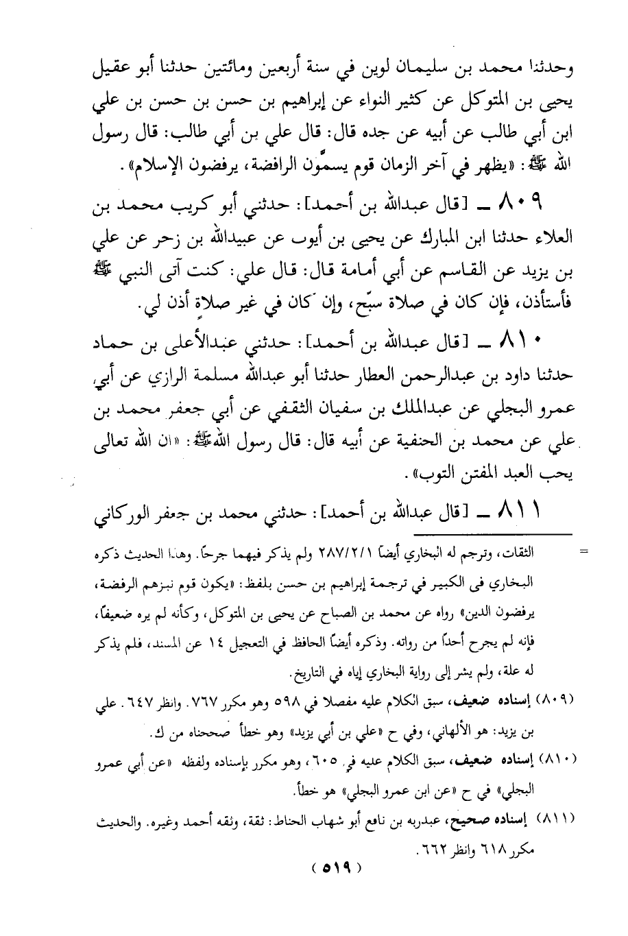 811 - [قال عبد الله بن أحمد]: حدثنى محمد بن جعفر الوركاني