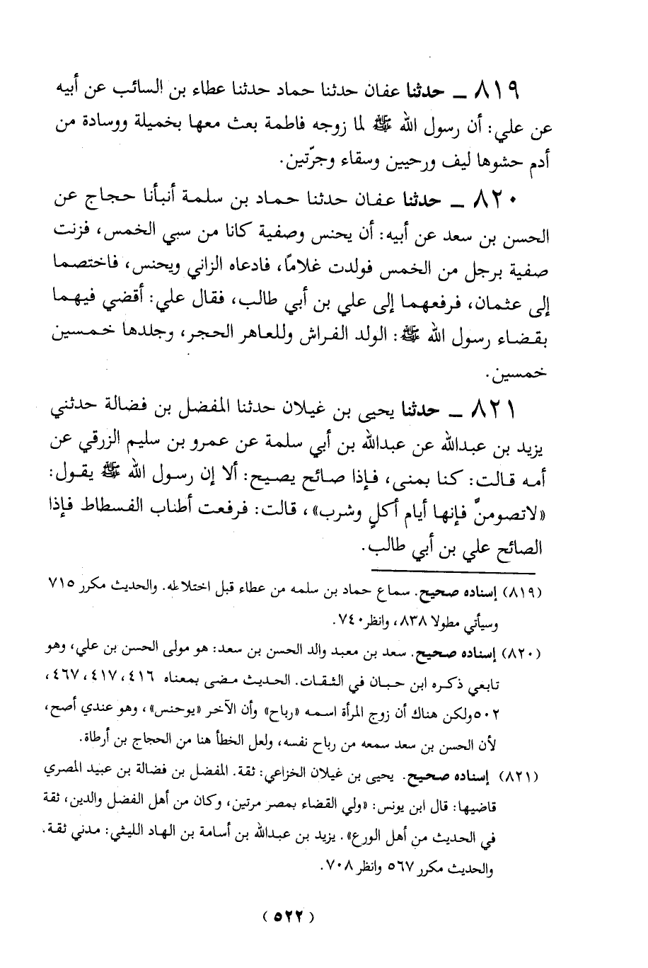 (820) إسناده صحيح. سعد بن معبد والد الحسن بن سعد: هو مولى الحسن بن علي، وهو تابعي ذكره ابن حبان في الثقات. الحديث مضى بمعناه 416، 417، 467، 502 ولكن هناك أن زوج المرأة اسمه "رباح" وأن الآخر "يوحنس"، وهو عندي أصح، لأن الحسن بن سعد سمعه من رباح نفسه، ولعل الخطأ هنا من الحجاج بن أرطاة.