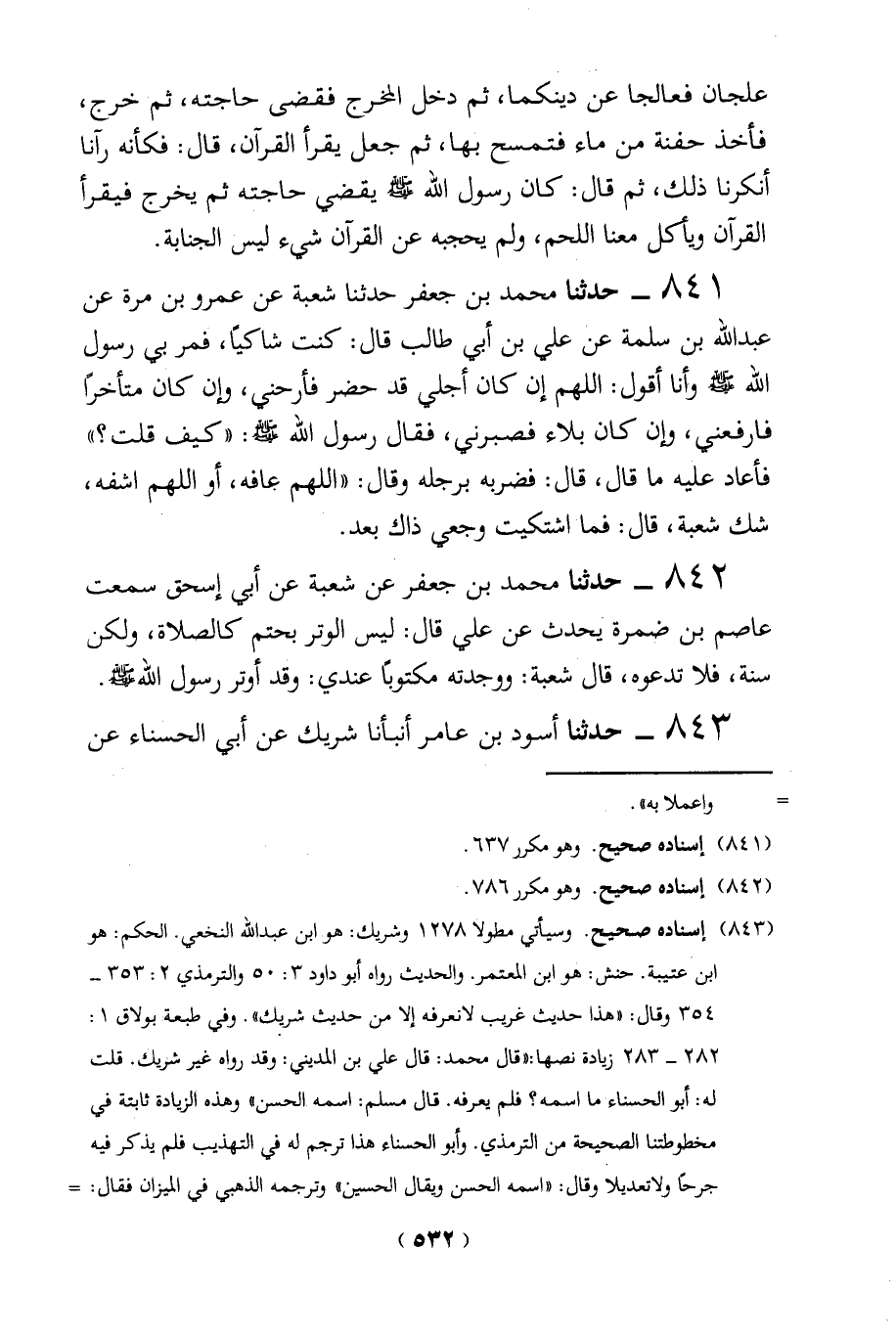 843 - حدثنا أسود بن عامر أنبأنا شريك عن أبي الحسناء عن