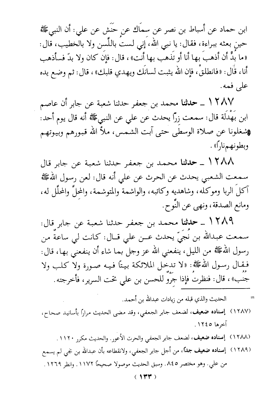 (1288) إسناده ضعيف، لضعف جابر الجعفي والحرث الأعور. والحديث مكرر 112.