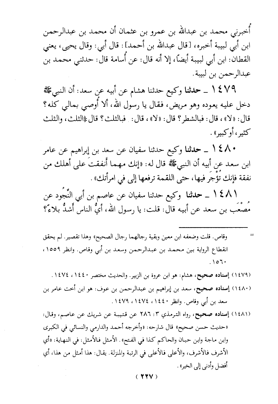(1480) إسناده صحيح، سعد بن إبراهيم بن عبد الرحمن بن عوف: هو ابن أخت عامر بن سعد بن أبي وقاص. وانظر 1440، 1474، 1479.