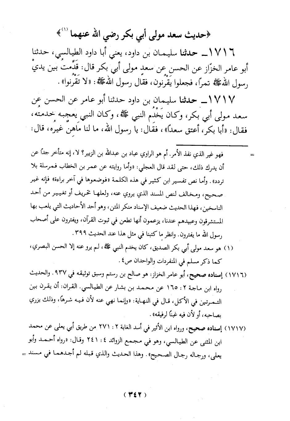 (1) هو سعد مولى أبي بكر الصديق، كان يخدم النبي - صلى الله عليه وسلم -، لم يرو عنه إلا الحسن البصري، كما ذكر مسلم في المنفردات والواحدان ص 4.