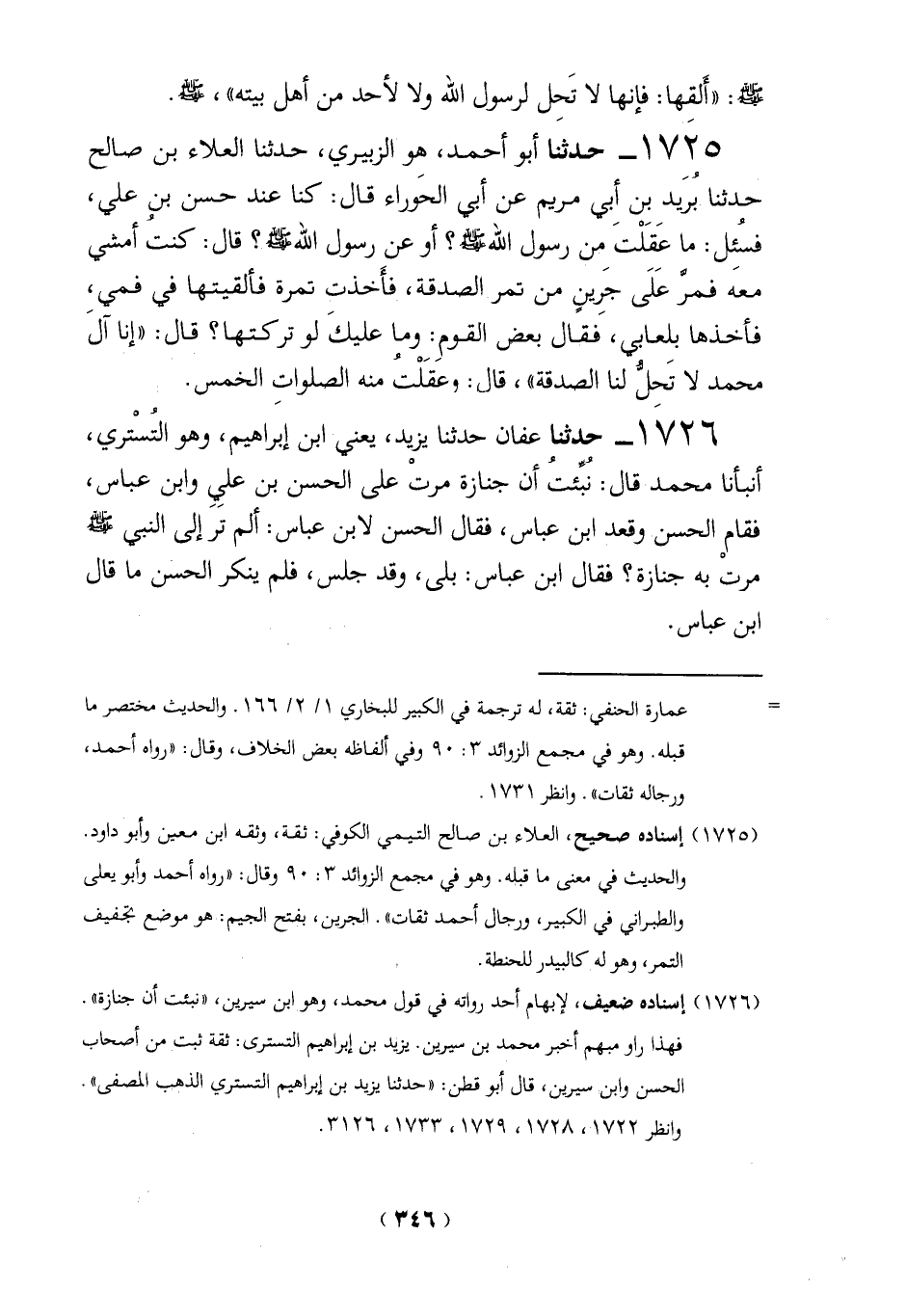 (1725) إسناده صحيح، العلاء بن صالح التيمي الكوفي: ثقة، وثقه ابن معين وأبو داود.