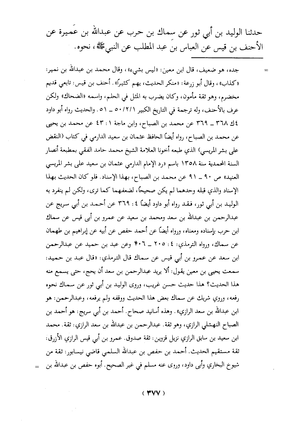 حدثنا الوليد بن أبي ثور عن سِماك بن حرب عن عبد الله بن عَميرة عن الأحنف بن قيس عن العباس بن عبد المطب عن النبي - صلى الله عليه وسلم -، نحوه.