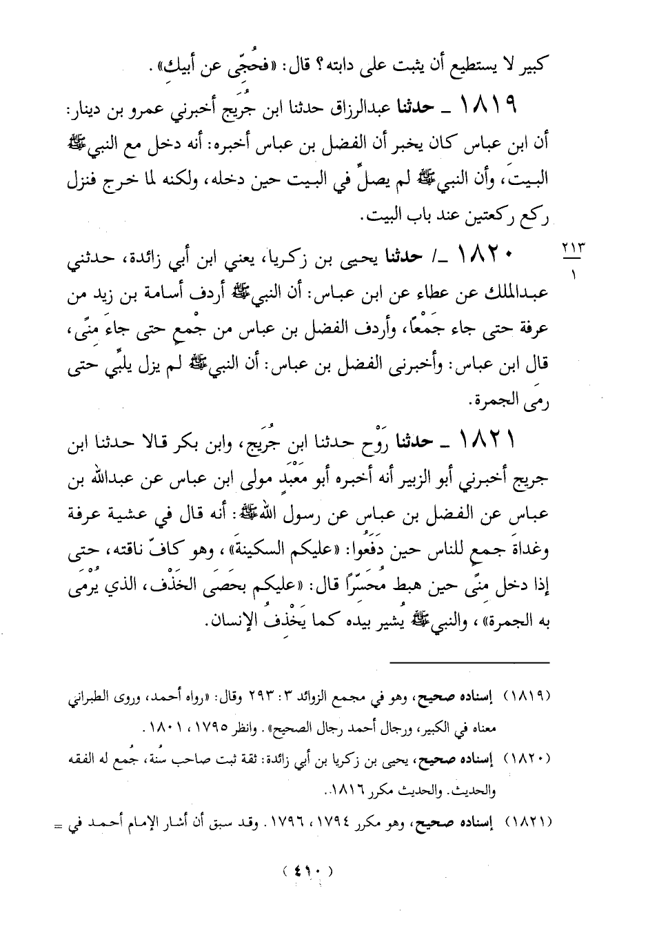 (1820) إسناده صحيح، يحيى بن زكريا بن أبي زائدة: ثقة ثبت صاحب سُنة، جمُع له الفقه والحديث. والحديث مكرر 1816.