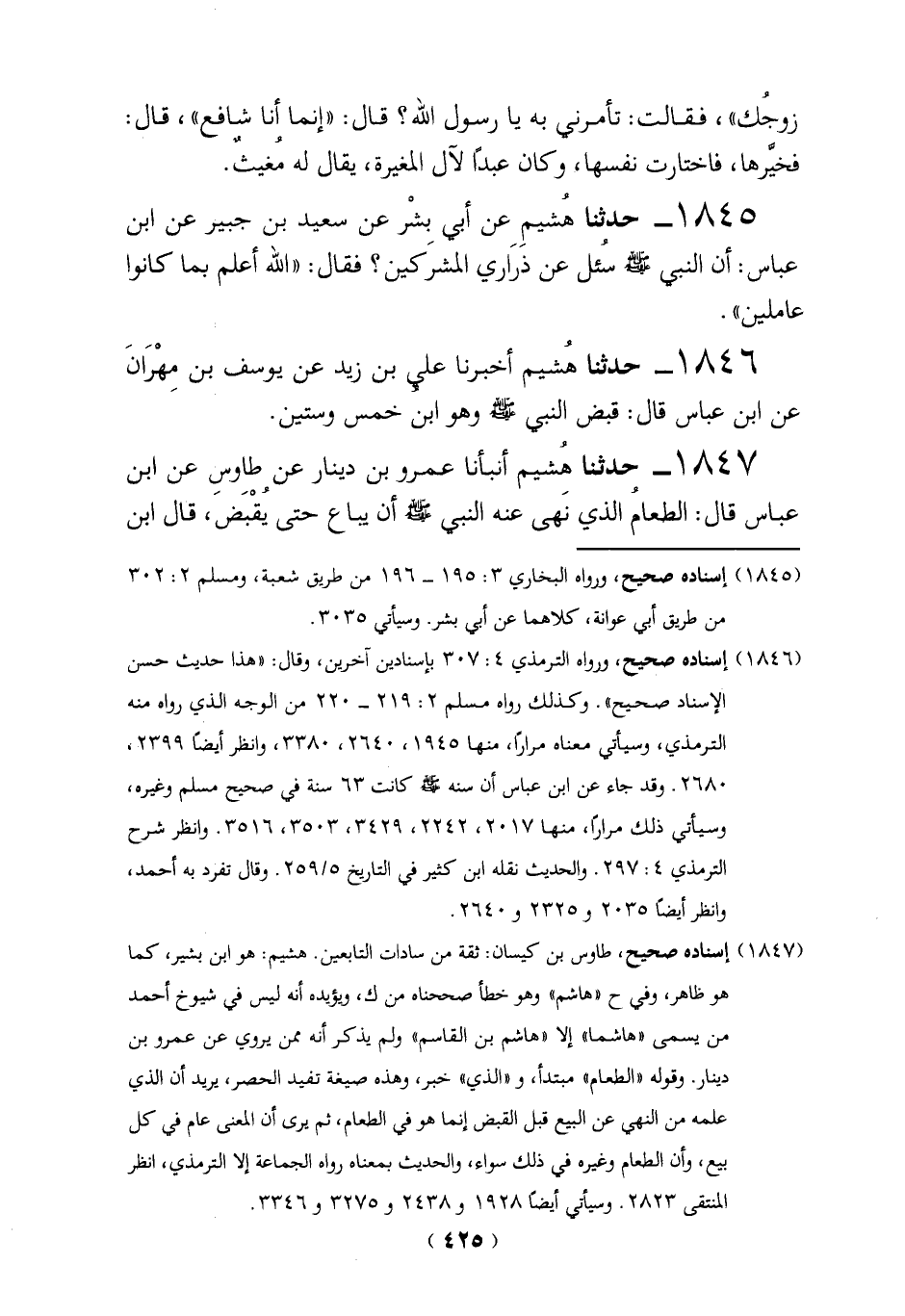 (1847) إسناده صحيح، طاوس بن كيسان: ثقة من سادات التابعين. هشيم: هو ابن بشير، كما
