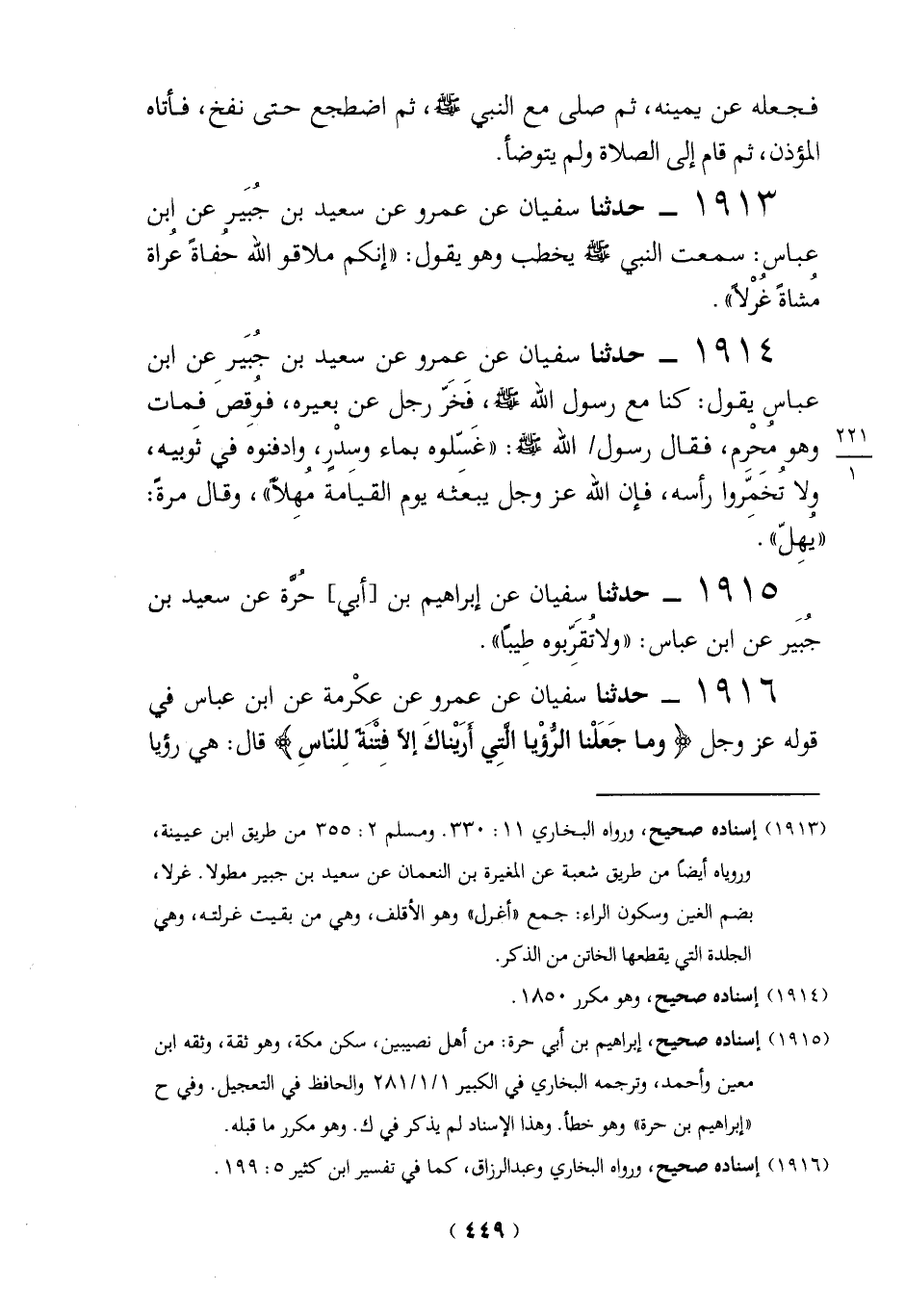 1915 - حدثنا سفيان عن إبراهيم بن [أبي] حُرَّة عن سعيد بن جُبَير عن ابن عباس: "ولاتُقَرِّبوه طِيبَا".