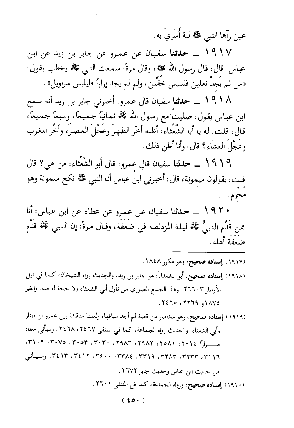 (1919) إسناده صحيح، وهو مختصر من قصة لم أجد سياقها، ولعلها مناقشة بين عمرو بن دينار وأبى الشعثاء. والحديث رواه الجماعة، كما في المنتقى 2467، 2468. وسيأتي معناه مراراً 2014، 2581، 2982، 2983، 3030، 3053، 3075، 3109، 3116، 3233، 3283، 3319، 3384، 3400، 3412، 3413. وسيأتي من حديث ابن عباس وحديث جابر 2672.