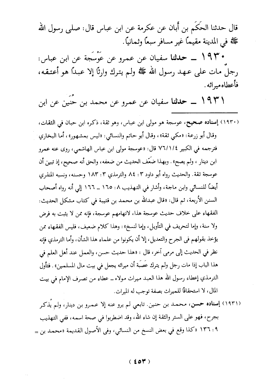 (1931) إسناده حسن، محمد بن حنين. تابعي لم يرو عنه إلا عمرو بن دينار، ولم يُذكر بجرح، فهو على الستر والثقة إن شاء الله، وقد اضطربوا في صحة اسمه، ففي التهذيب 9: 136 "كذا وقع في بعض النسخ من النسائي، وفى الأصول القديمة "محمد بن =