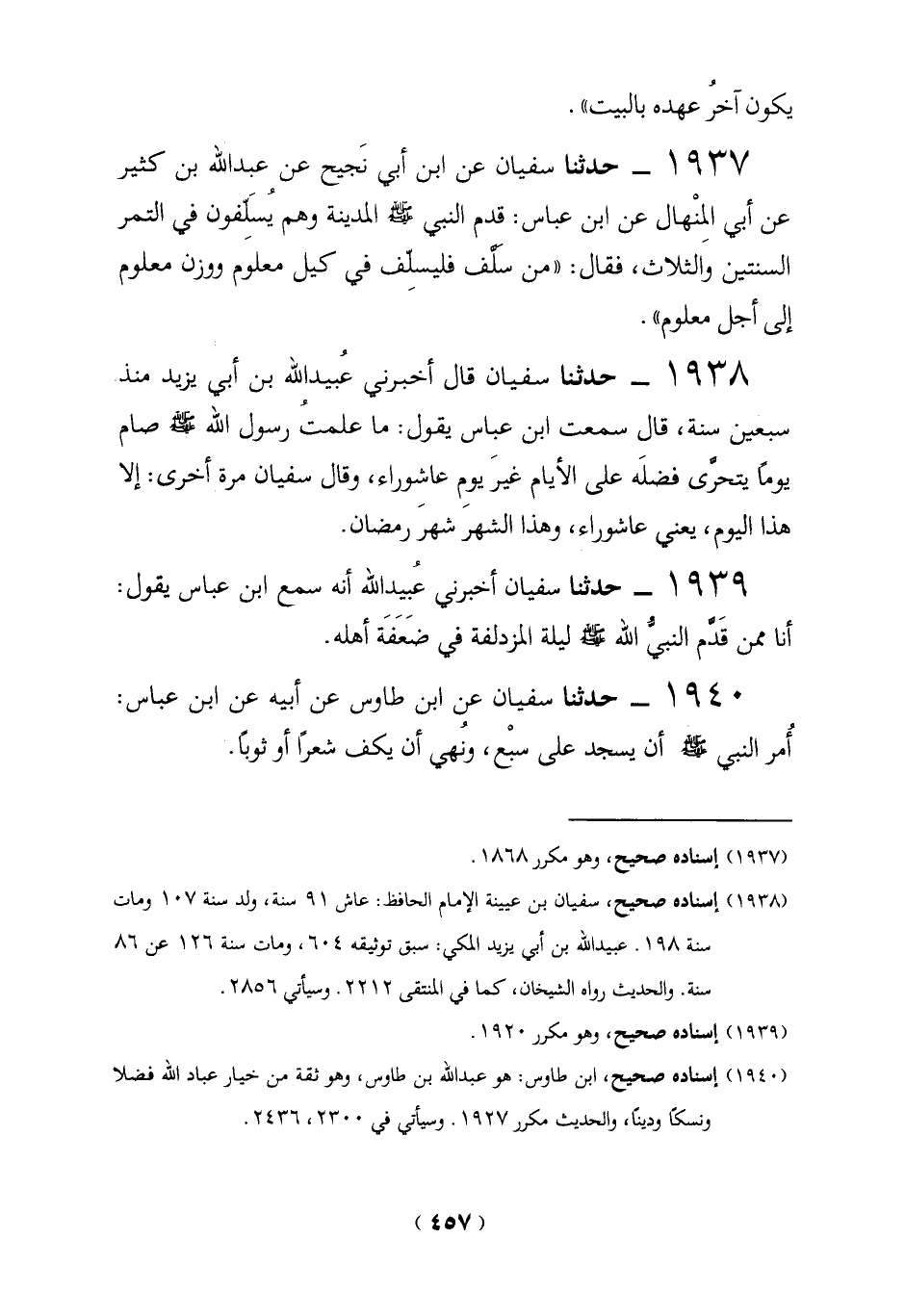 (1938) إسناده صحيح، سفيان بن عيينة الإمام الحافظ: عاش 91 سنة، ولد سنة 107 ومات