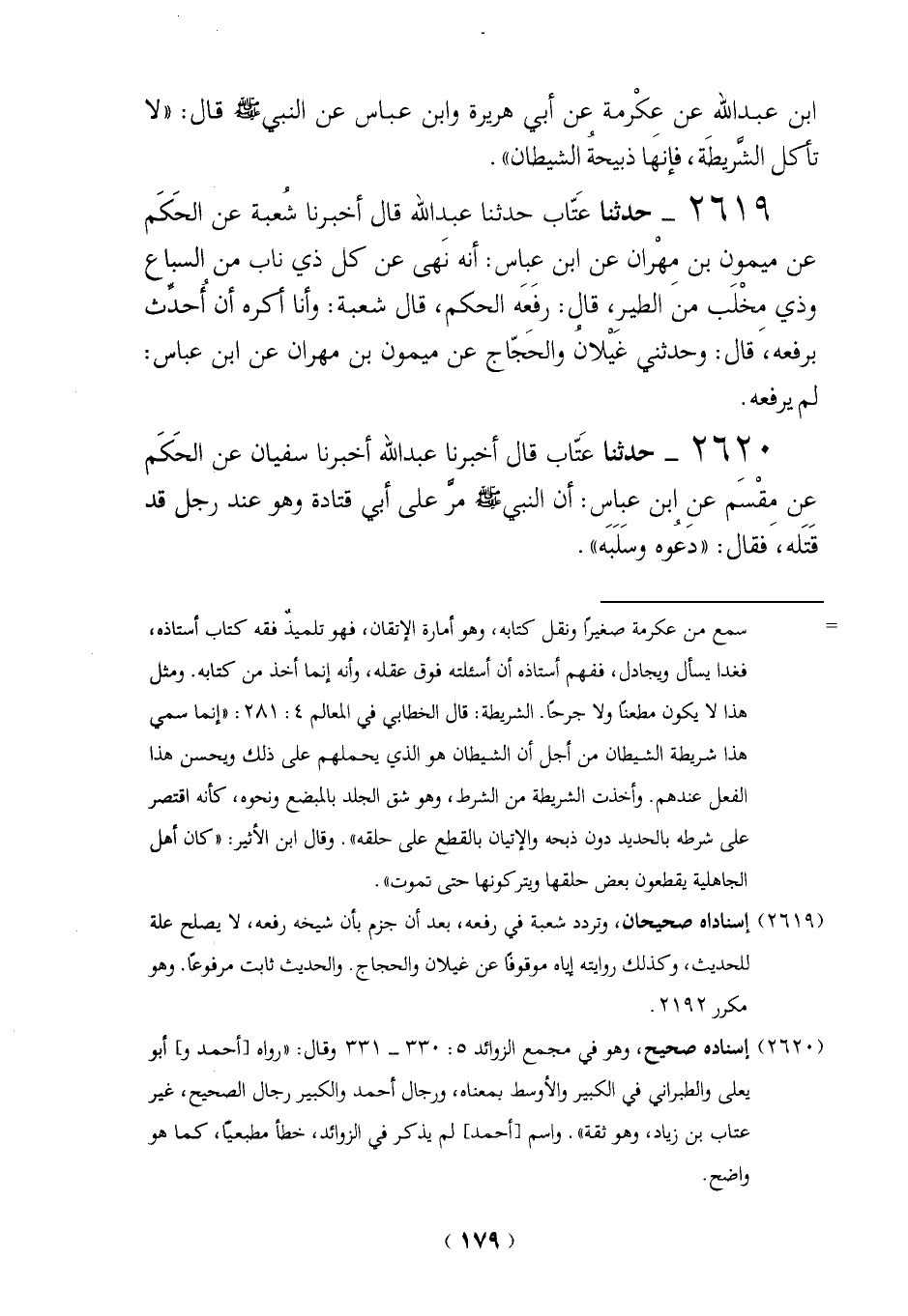 (2619) إسناداه صحيحان، وتردد شعبة في رفعه، بعد أن جزم بأن شيخه رفعه، لا يصلح علة للحديث، وكذلك روايته إياه موقوفًا عن غيلان والحجاج. والحديث ثابت مرفوعاً. وهو مكرر 2192.