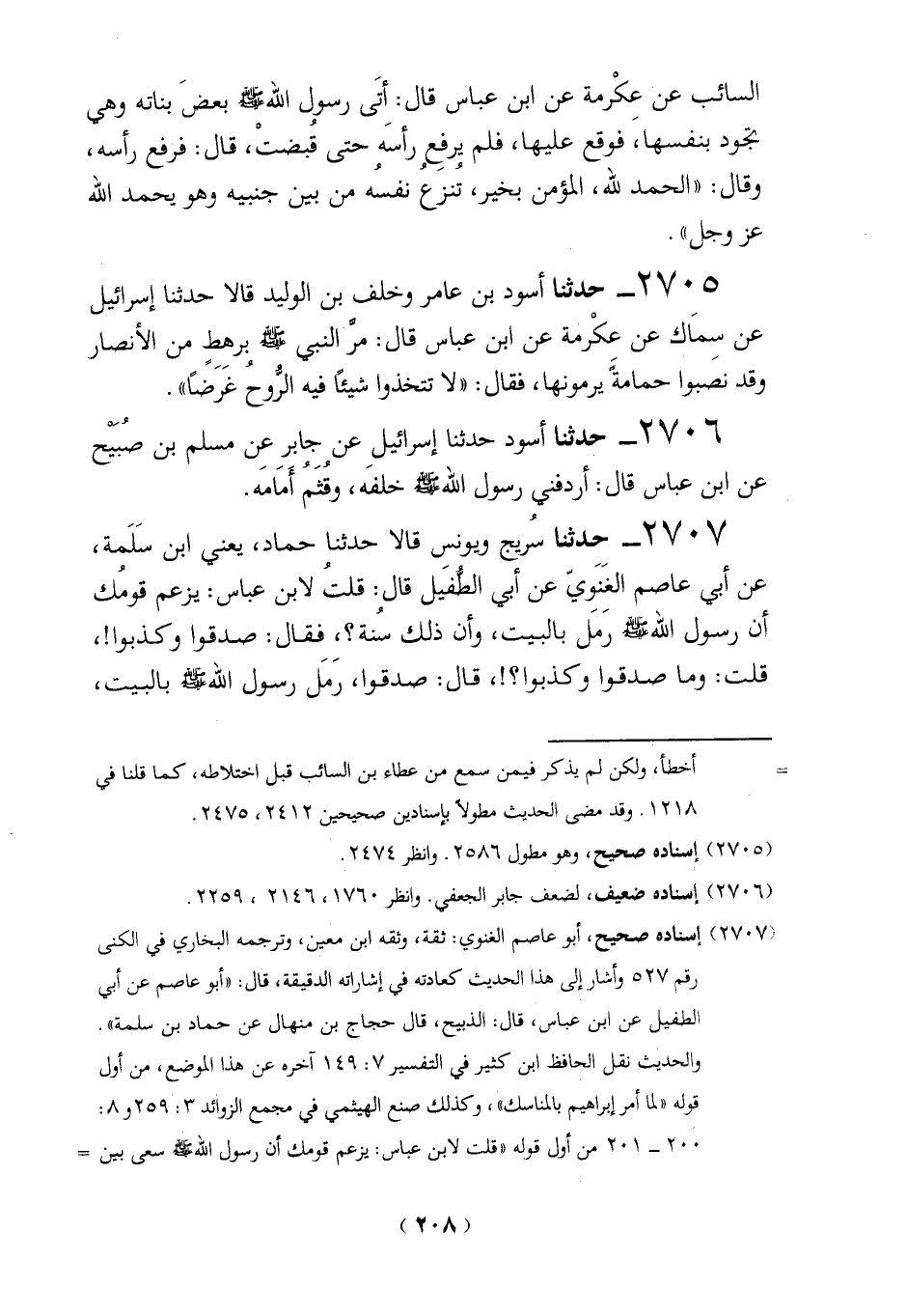(2707) إسناده صحيح، أبو عاصم الغنوي: ثقة، وثقه ابن معين، وترجمه البخاري في الكنى رقم 527 وأشار إلى هذا الحديث كعادته في إشاراته الدقيقة، قال: "أبو عاصم عن أبي الطفيل عن ابن عباس، قال: الذبيح، قال حجاج بن منهال عن حماد بن سلمة".