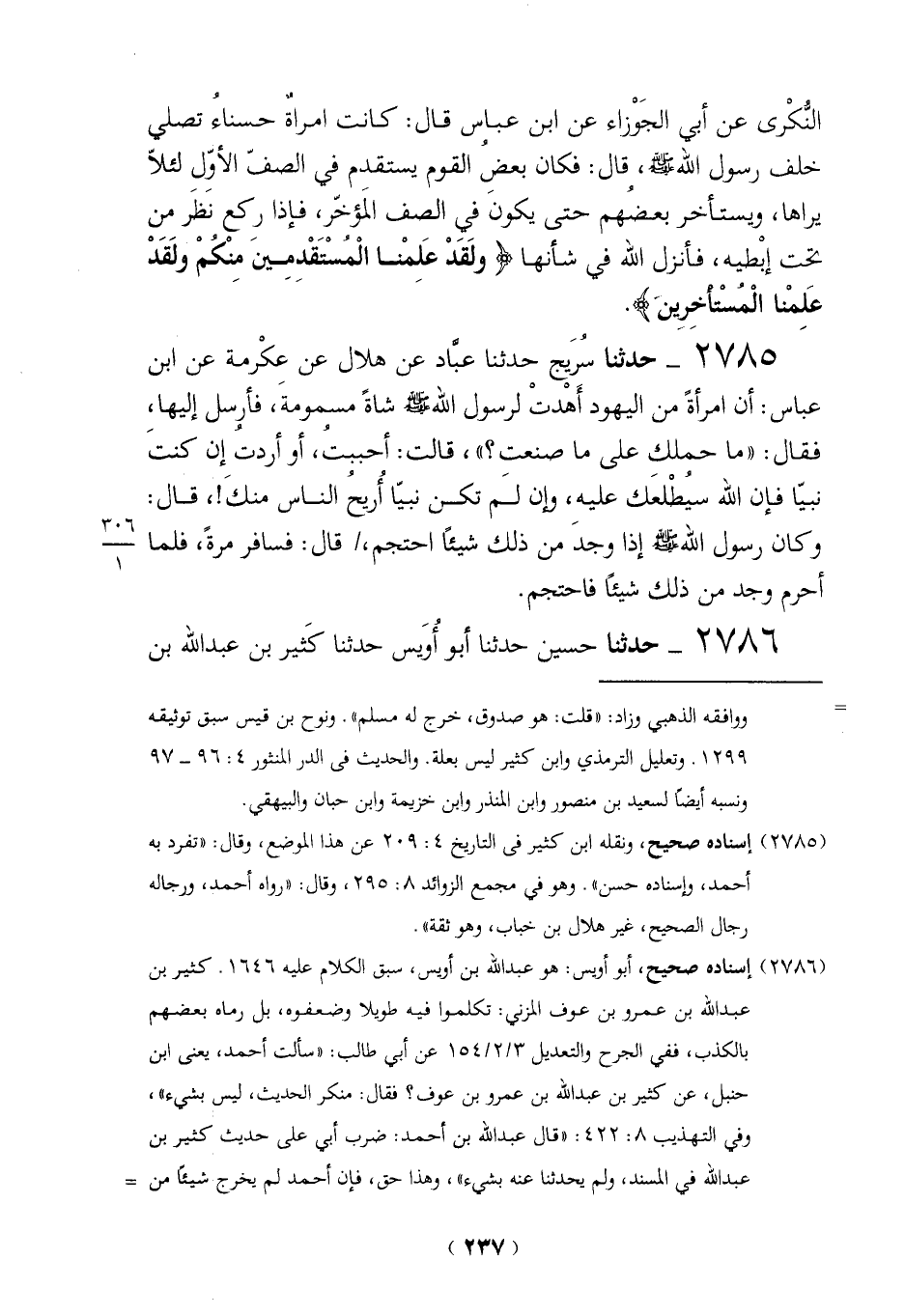 2786 - حدثنا حسين حدثنا أبو أوَيس حدثنا كَثير بن عبد الله بن