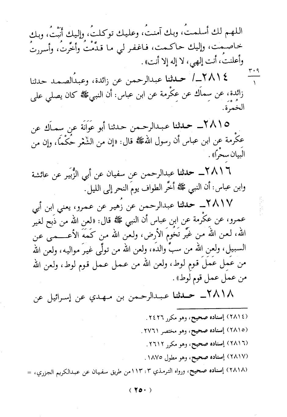 2818 - حدثنا عبد الرحمن بن مهدي عن إسرائيل عن