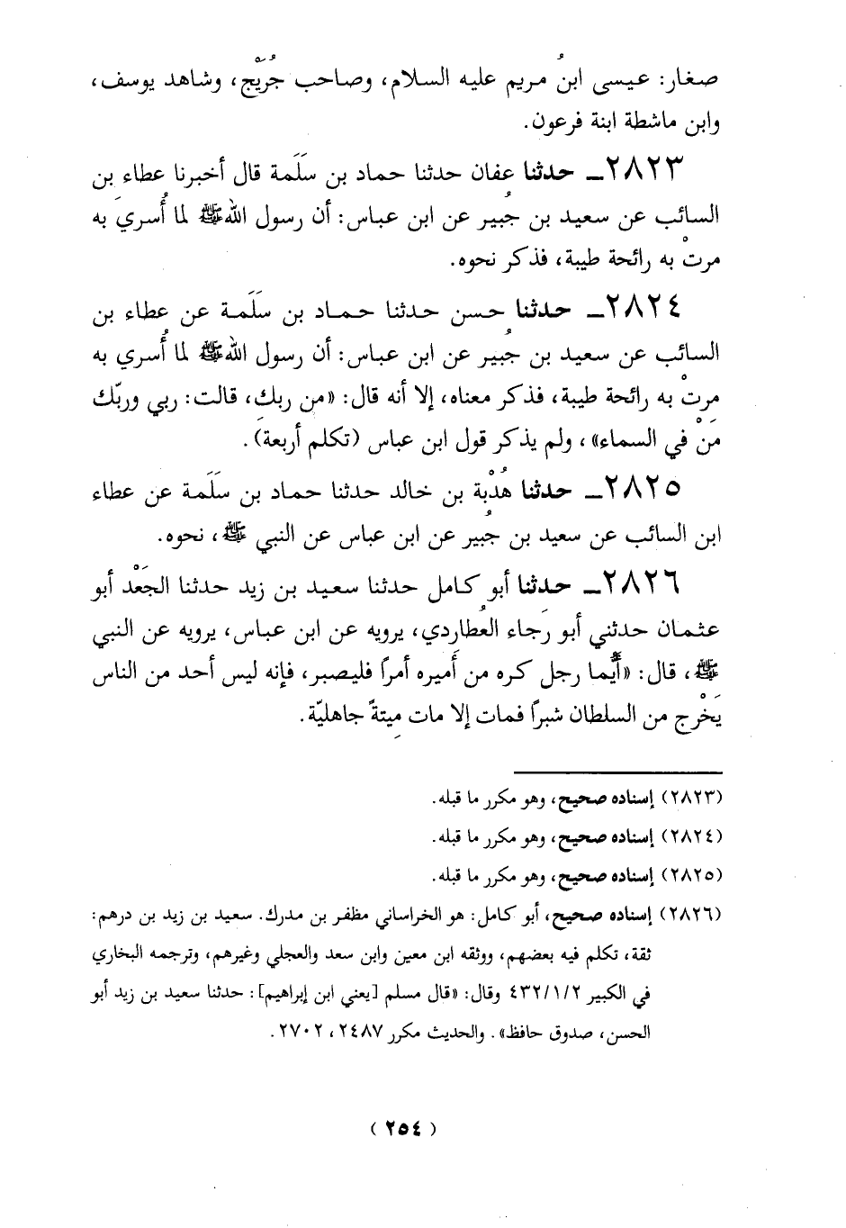 2825 - حدثنا هُدْبة بن خالد حدثنا حماد بن سَلَمة عن عطاء ابن السائب عن سعيد بن جُبير عن ابن عباس عن النبي - صلى الله عليه وسلم -، نحوه.
