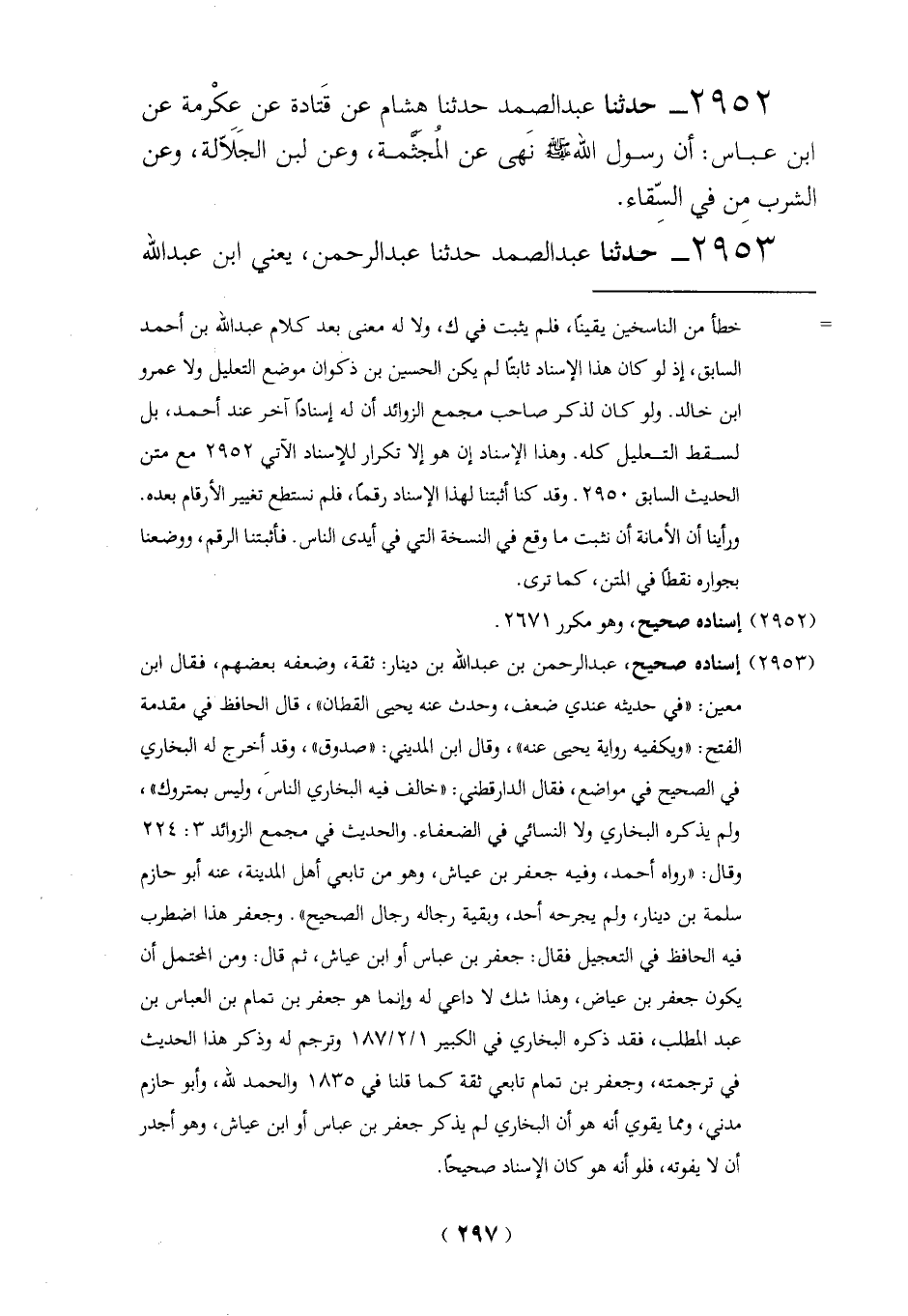 (2953) إسناده صحيح، عبد الرحمن بن عبد الله بن دينار: ثقة، وضعفه بعضهم، فقال ابن