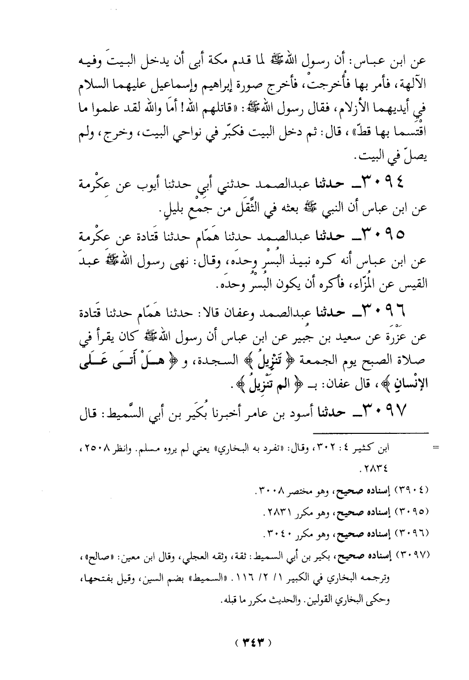 (3097) إسناده صحيح، بكير بن أبي السميط: ثقة، وثقه العجلي، وقال ابن معين: "صالح"، وترجمه البخاري في الكبير 1/ 2/ 116. "السميط" بضم السين، وقيل بفتحها، وحكى البخاري القولين. والحديث مكرر ما قبله.