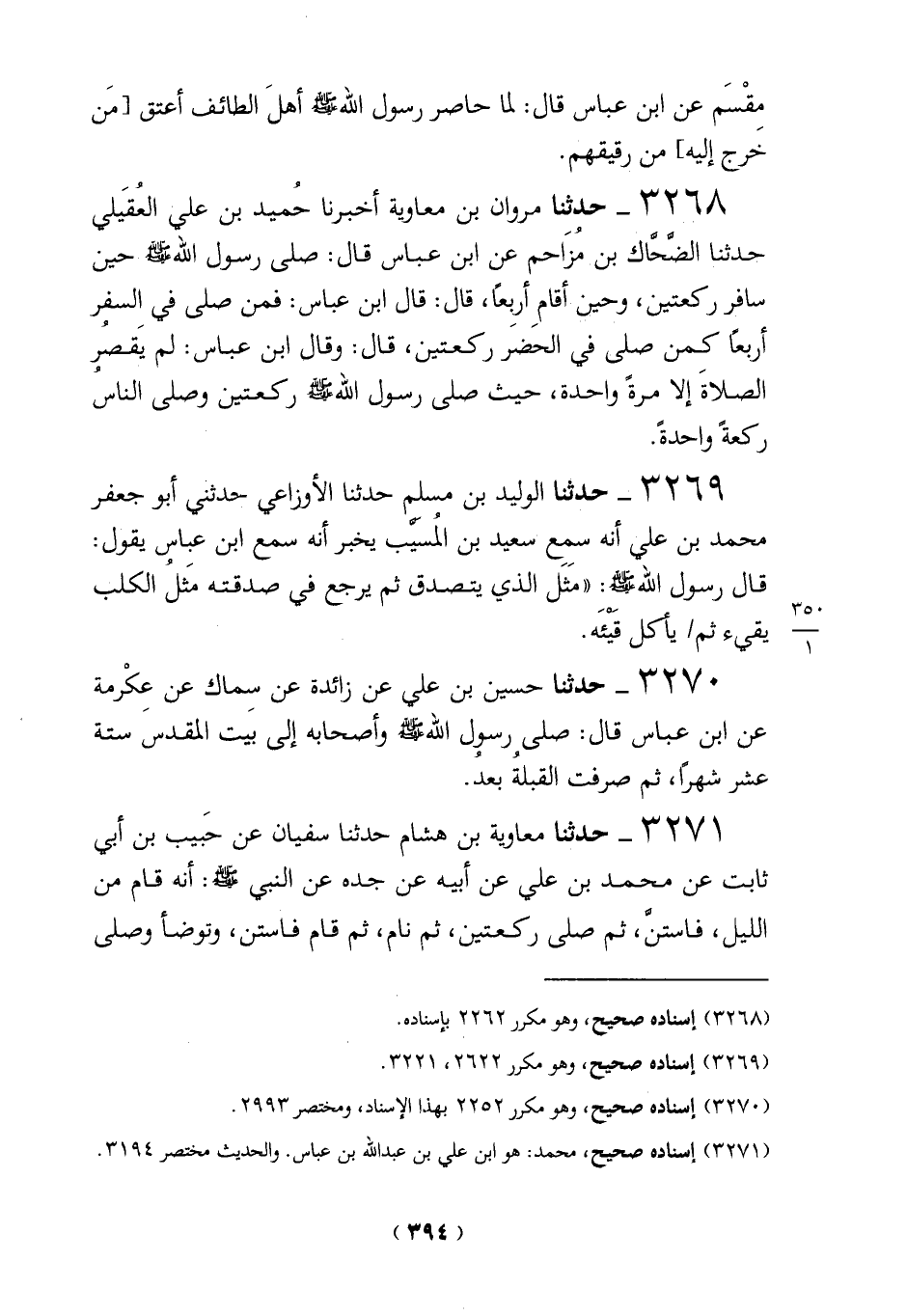 (3271) إسناده صحيح، محمد: هو ابن علي بن عبد الله بن عباس. والحديث مختصر 3194.