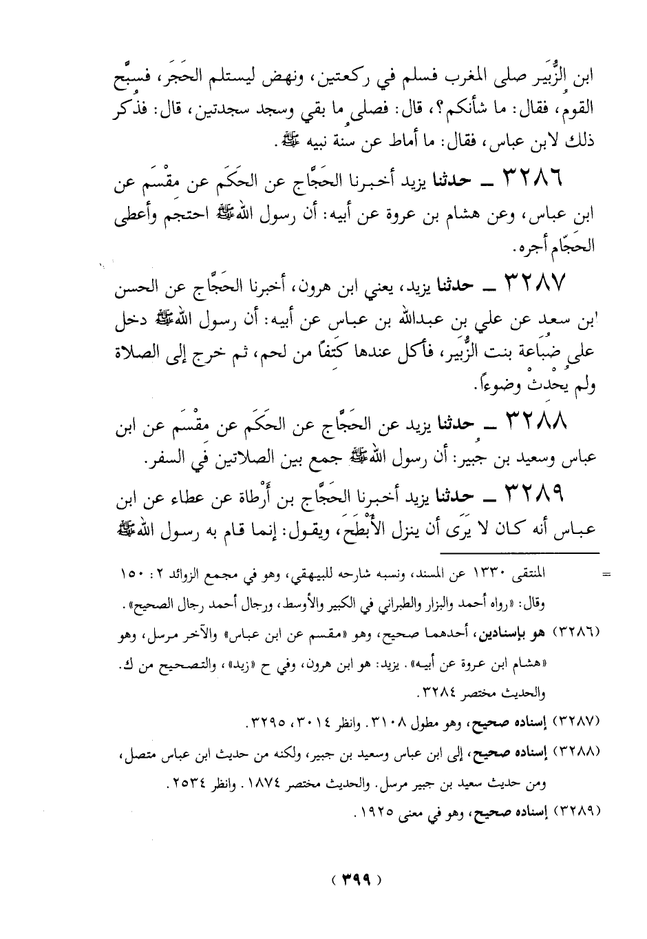 3286 - حدثنا يزيد أخبرنا الحَجَّاج عن الحَكَم عن مقْسَم عن ابن عباس، وعن هشام بن عروة عن أبيه: أن رسول الله - صلى الله عليه وسلم - احتجَم وأعطى الحَجّام أجره.
