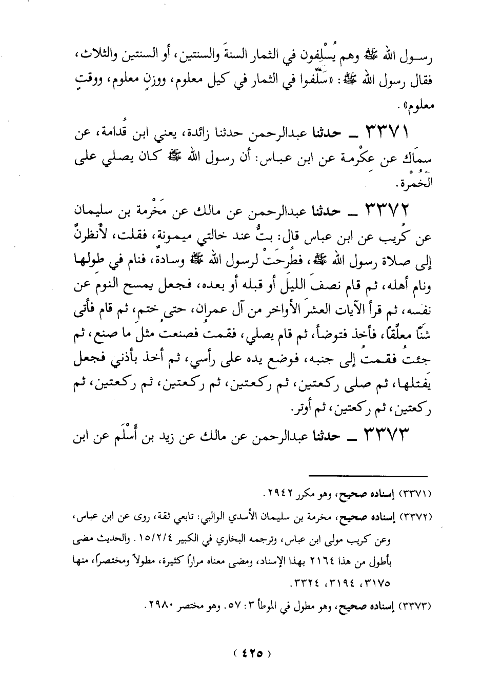 (3373) إسناده صحيح، وهو مطول في الموطأ 3: 57. وهو مختصر 2980.