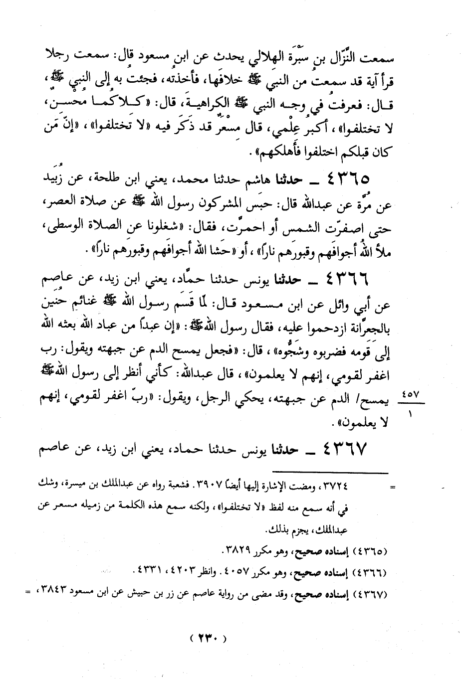 (4367) إسناده صحيح، وقد مضى من رواية عاصم عن زر بن حبيش عن ابن مسعود 3843، =
