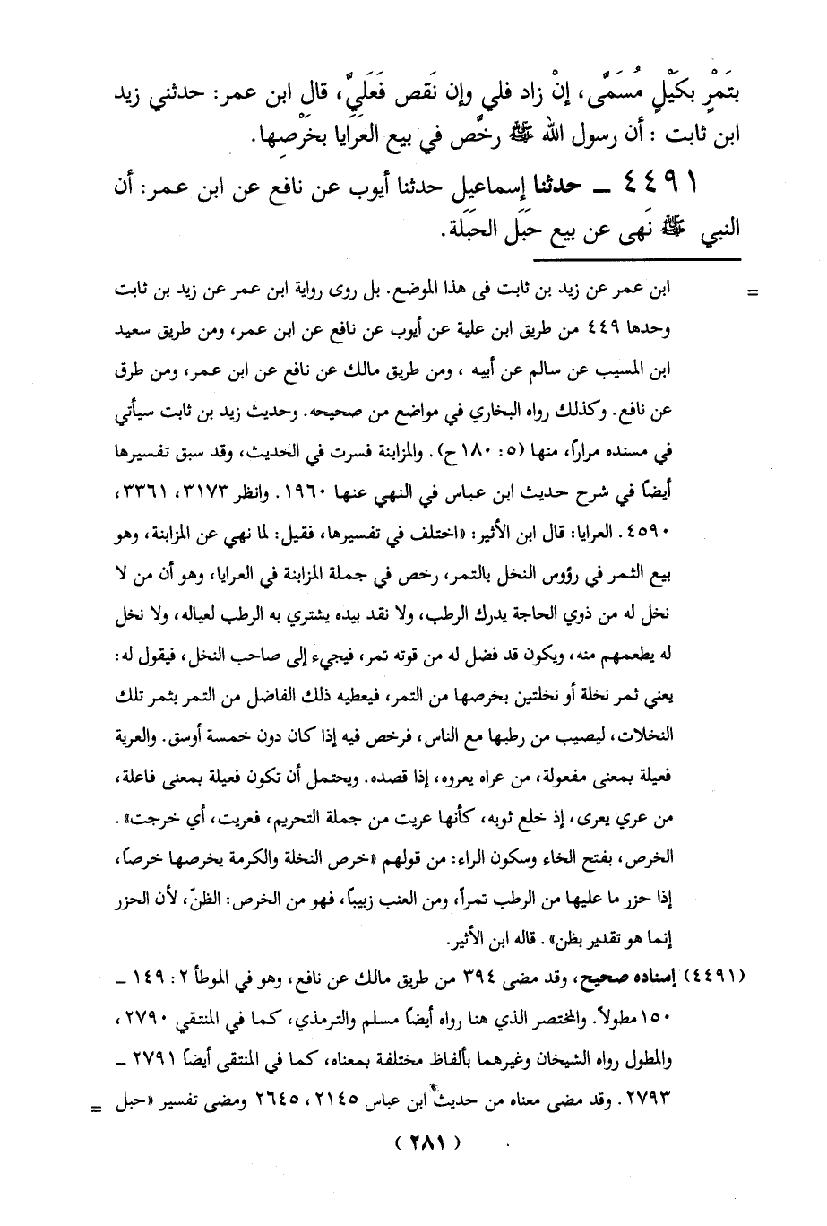 (4491) إسناده صحيح، وقد مضى 394 من طريق مالك عن نافع، وهو في الموطأ 2: 149 - 150 مطولاً. والمختصر الذي هنا رواه أيضاً مسلم والترمذي، كما في المنتقى 2790، والمطول رواه الشيخان وغيرهما بألفاظ مختلفة بمعناه، كما في المنتقى أيضاً 2791 - 2793. وقد مضى معناه من حديث ابن عباس 2145، 2645 ومضى تفسير "حبل=