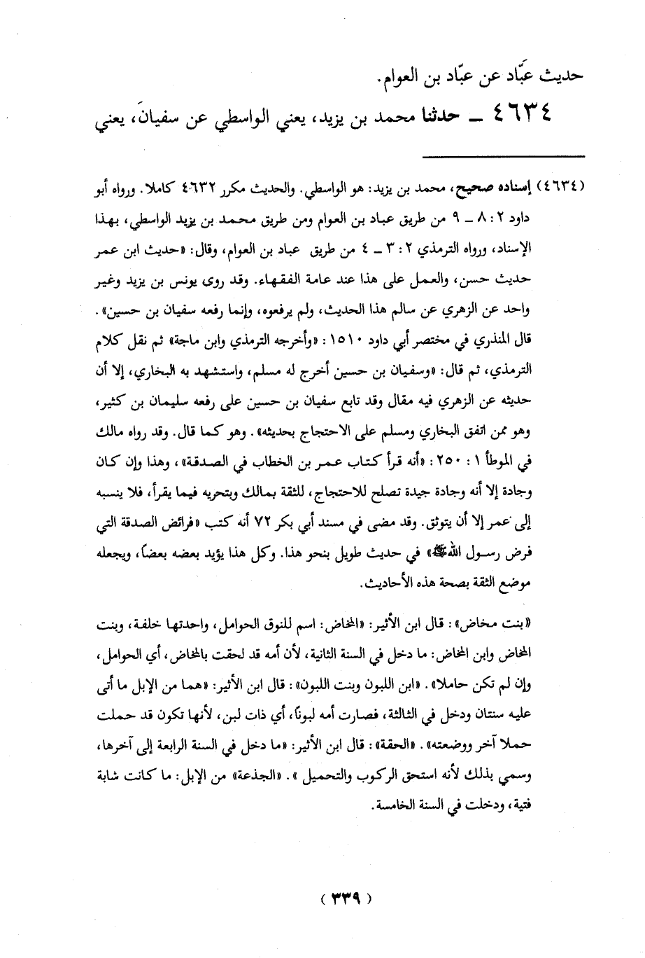 (4634) إسناده صحيح، محمد بن يزيد: هو الواسطي. والحديث مكرر 4632 كاملا. ورواه أبو داود 2: 8 - 9 من طريق عباد بن العوام ومن طريق محمد بن يذيد الواسطي، بهذا الإسناد، ورواه الترمذي 2: 3 - 4 من طريق عباد بن العوام، وقال: "حديث ابن عمر حديث حسن، والعمل على هذا عند عامة الفقهاء. وقد روى يونس بن يزيد وغير واحد عن الزهري عن سالم هذا الحديث، ولم يرفعوه، وإنما رفعه سفيان بن حسين".