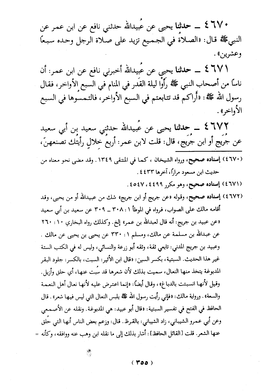 (4672) إسناده صحيح، وقوله "عن جُريج أو ابن جُريج" شك من عُبيد الله أو من يحيى، وقد أقامه مالك على الصواب، فرواه في الموطأ 1: 308 - 309 عن سعيد بن أبي سعيد" عن عبيد بن جُريج: أنه قال لعبد الله بن عمر" إلخ. وكذلك رواه البخاري 10: 260 عن عبد الله بن مسلمة عن مالك، ومسلم1: 330 عن يحيى بن يحيى عن مالك.