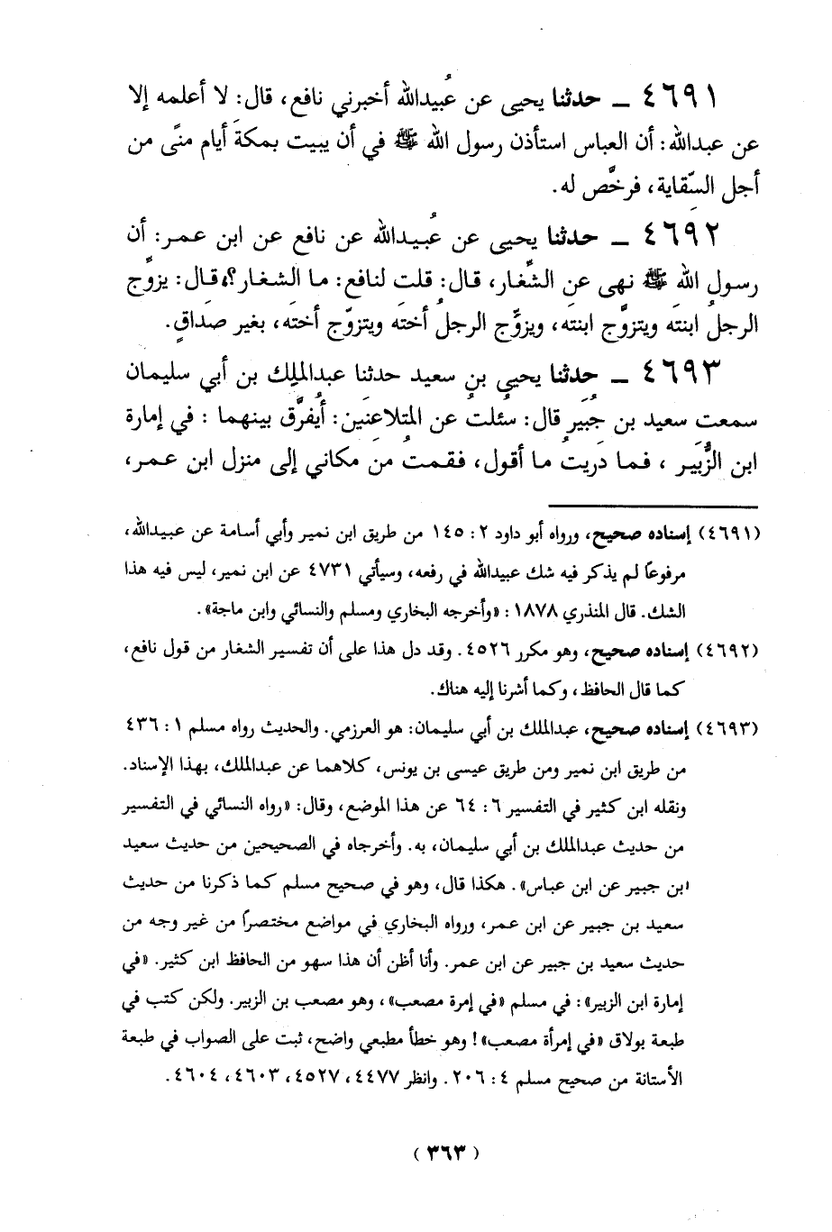 (4692) إسناده صحيح، وهو مكرر 4526. وقد دل هذا على أن تفسير الشغار من قول نافع،