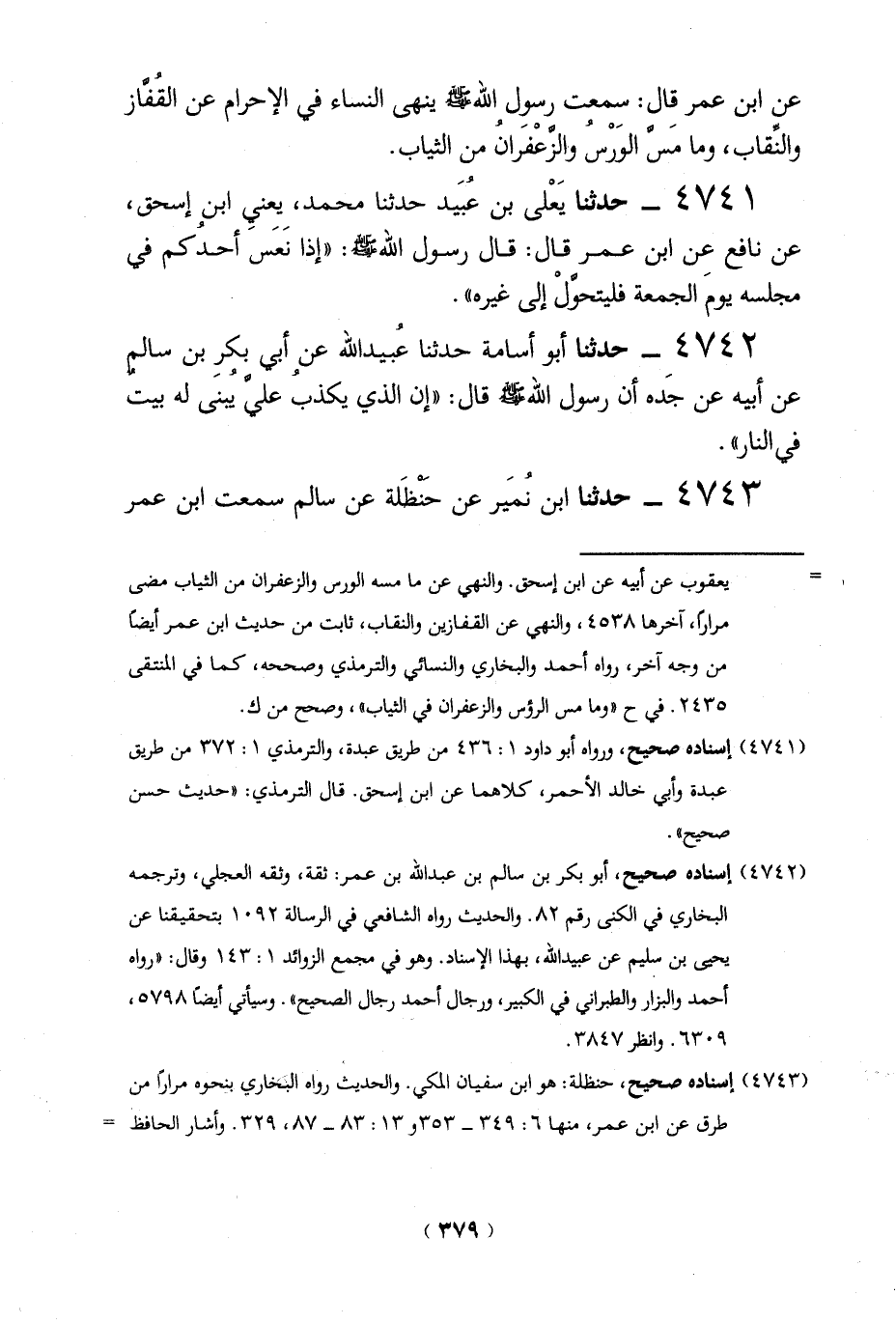 4743 - حدثنا ابن نُمَير عن حَنْظَلة عن سالم سمعت ابن عمر