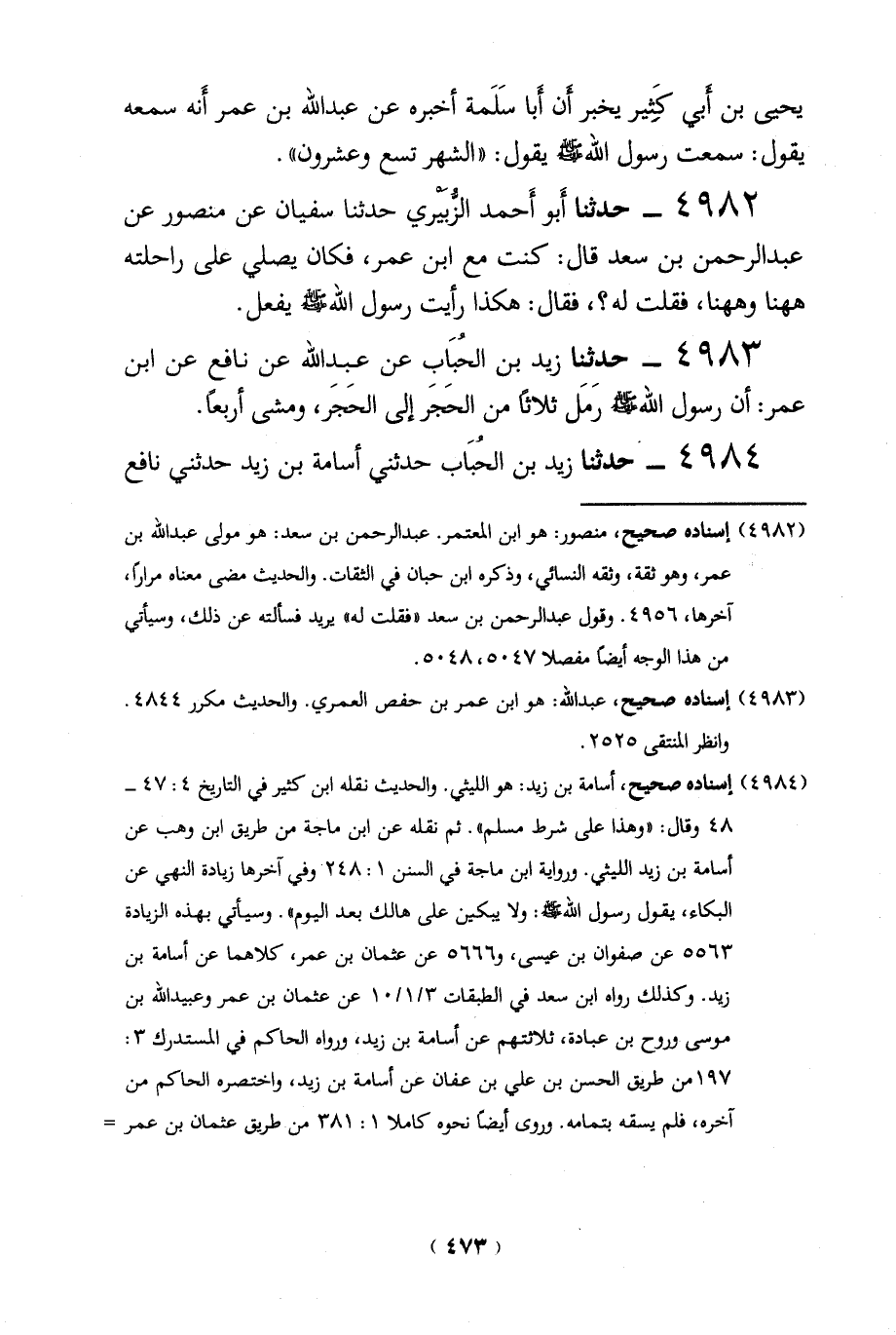 ْ-4984 حدثنا زيد بن الحُبَاب حدثني أسامة بن زيد حدثني نافع