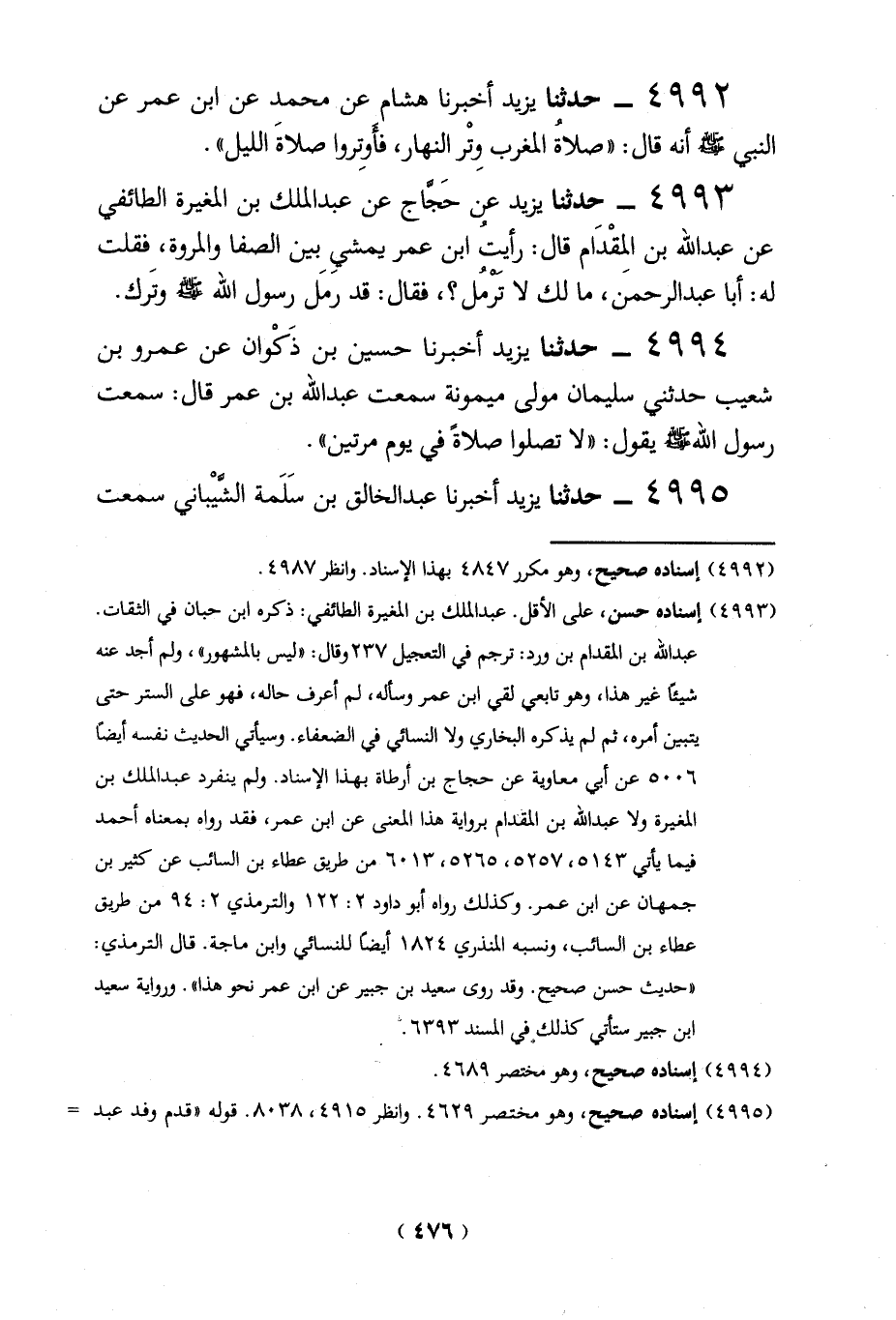 (4992) إسناده صحيح، وهو مكرر 4847 بهذا الإسناد. وانظر 4987.