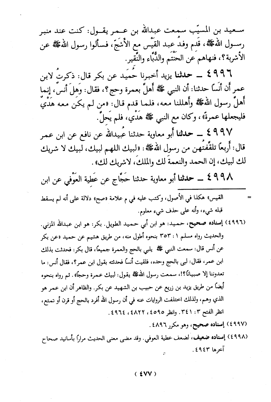 (4996) إسناده صحيح، حميد: هو ابن أبي حميد الطويل. بكر: هو ابن عبد الله المزني.