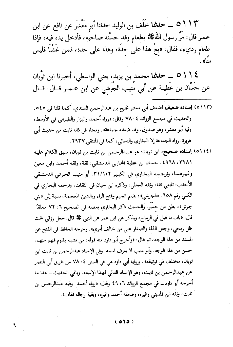 (5113) إسناده ضعيف لضعف أبي معشر نجيح بن عبد الرحمن السندي، كما قلنا في 545.