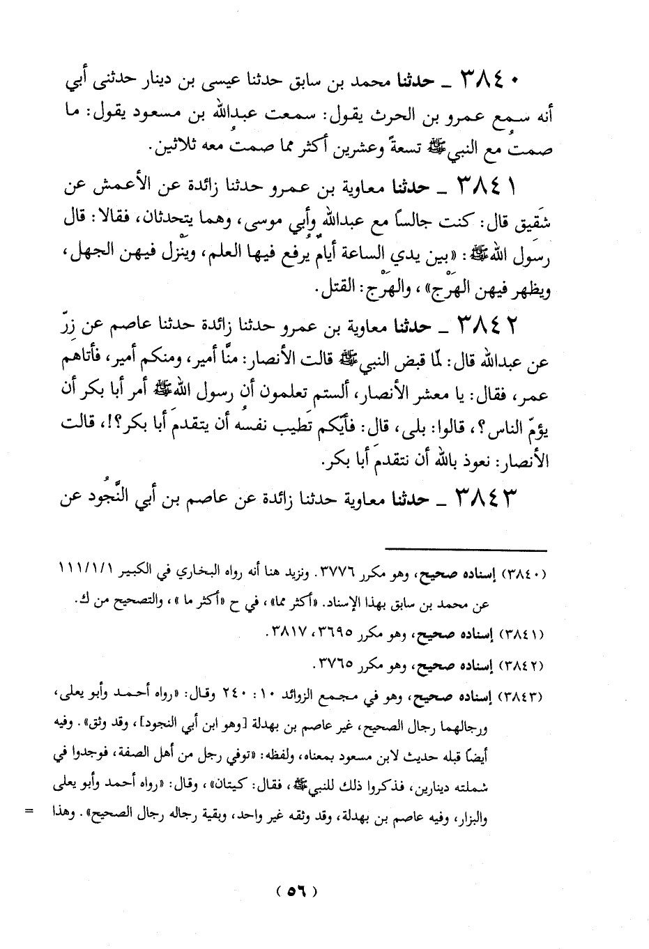 3843 - حدثنا معاوية حدثنا زائدة عن عاصم بن أبي النَّجُود عن